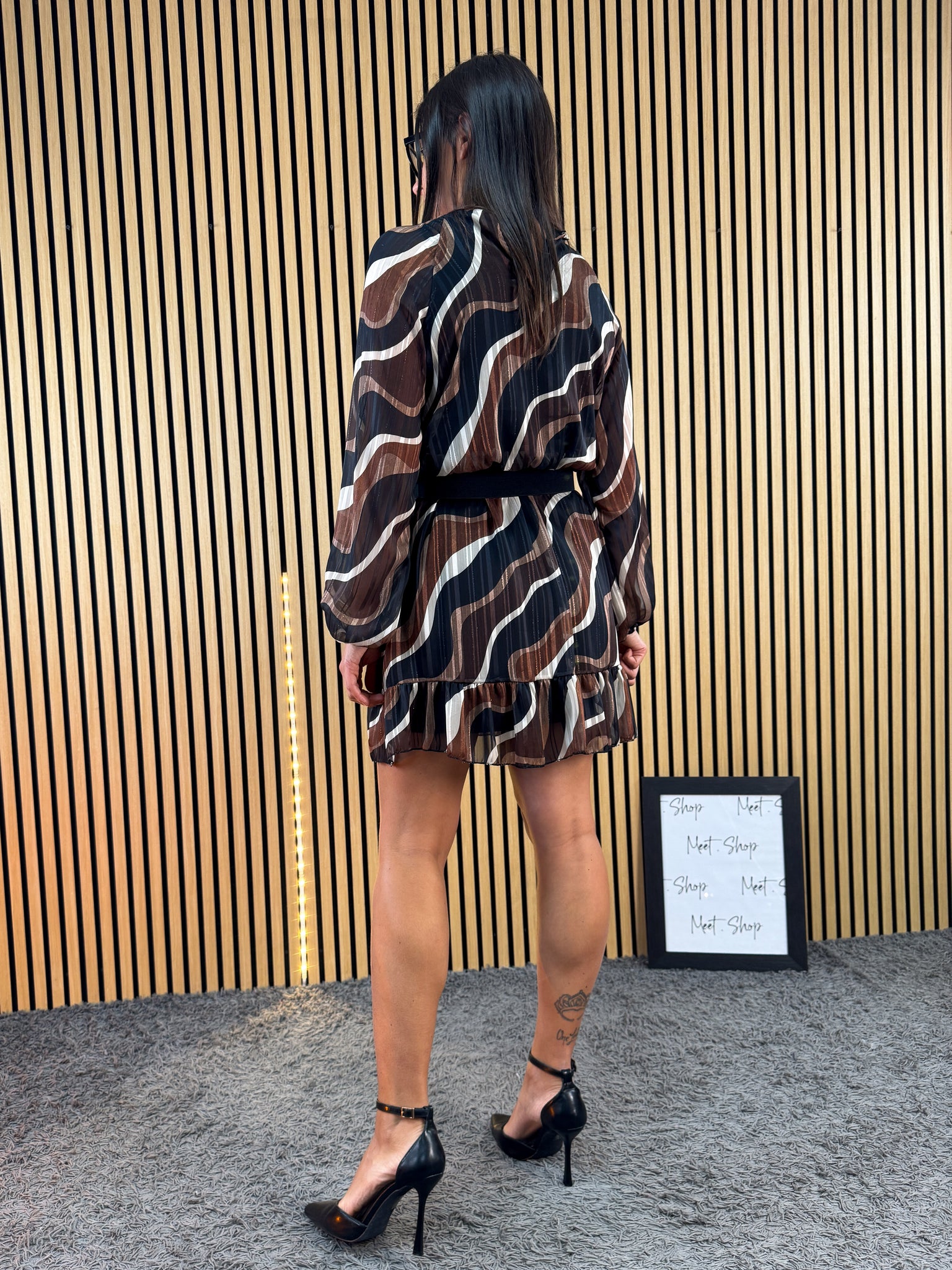 Abito con manica lunga in trasparenza ed elastico in vita.