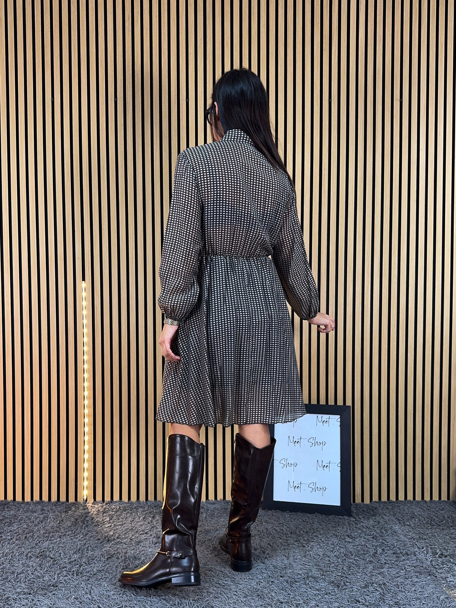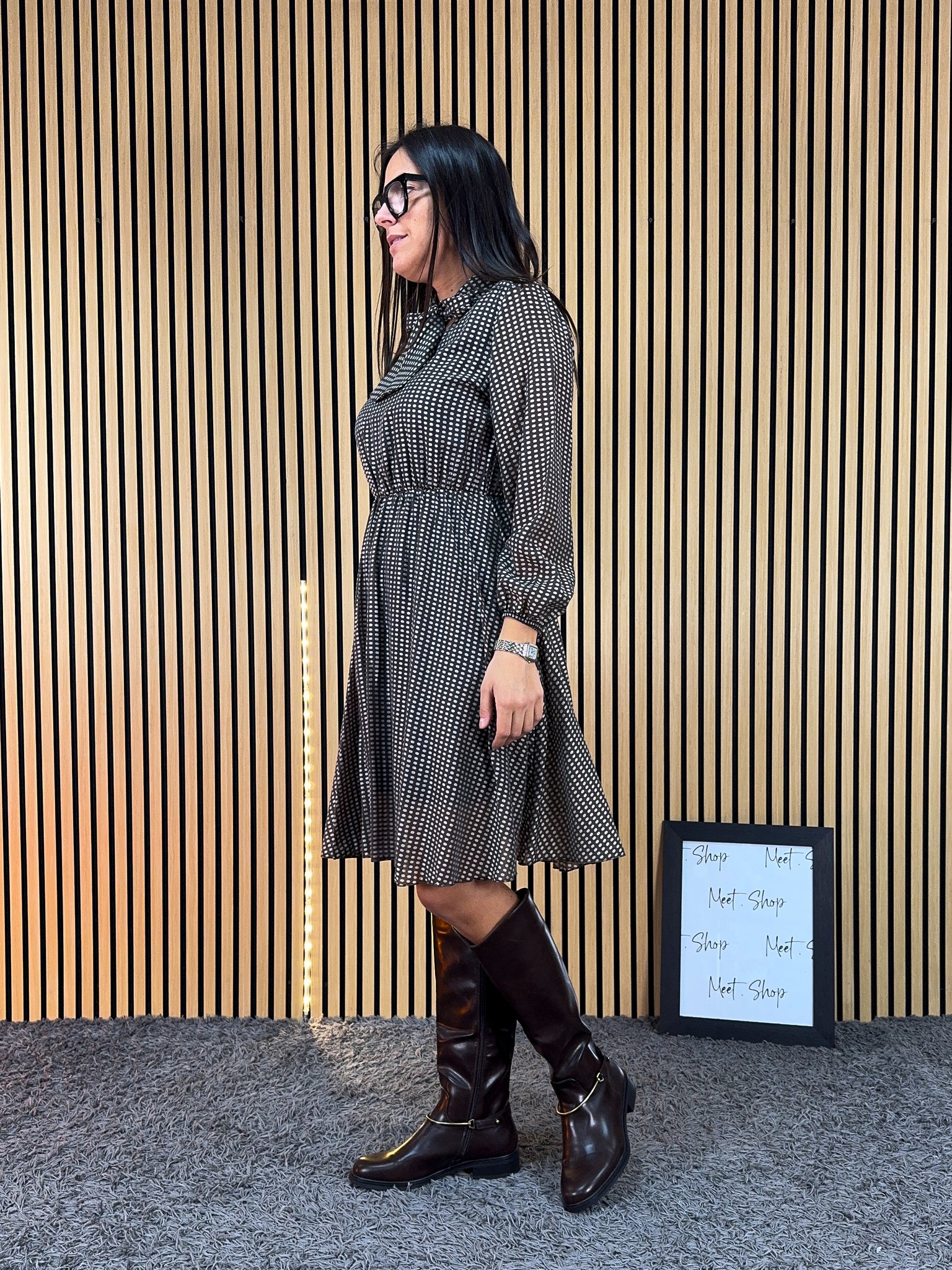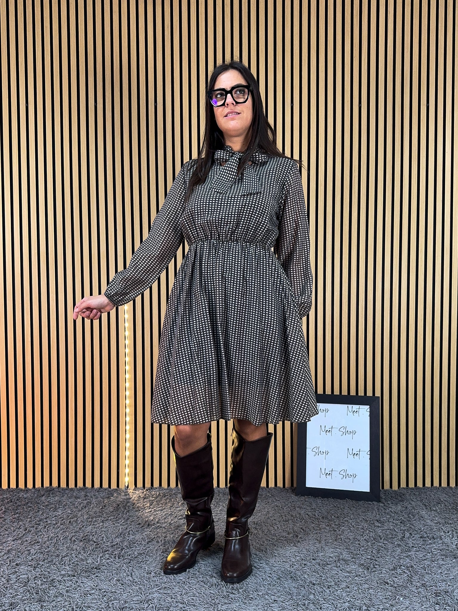 Abito con fantasia pois manica lunga con sottoveste in viscosa