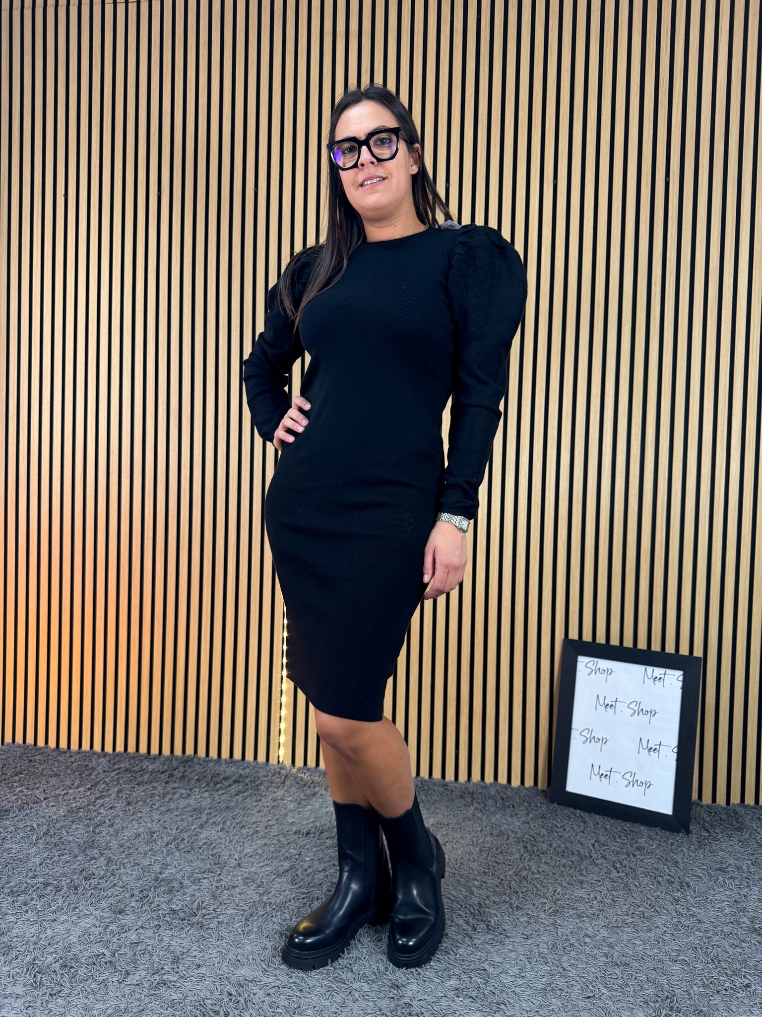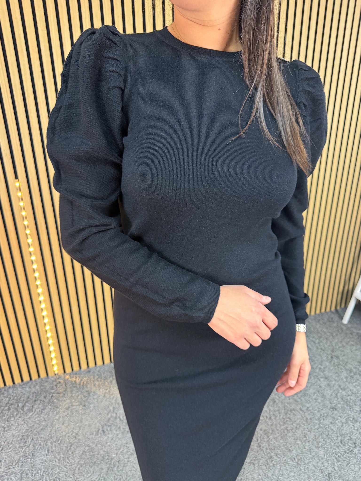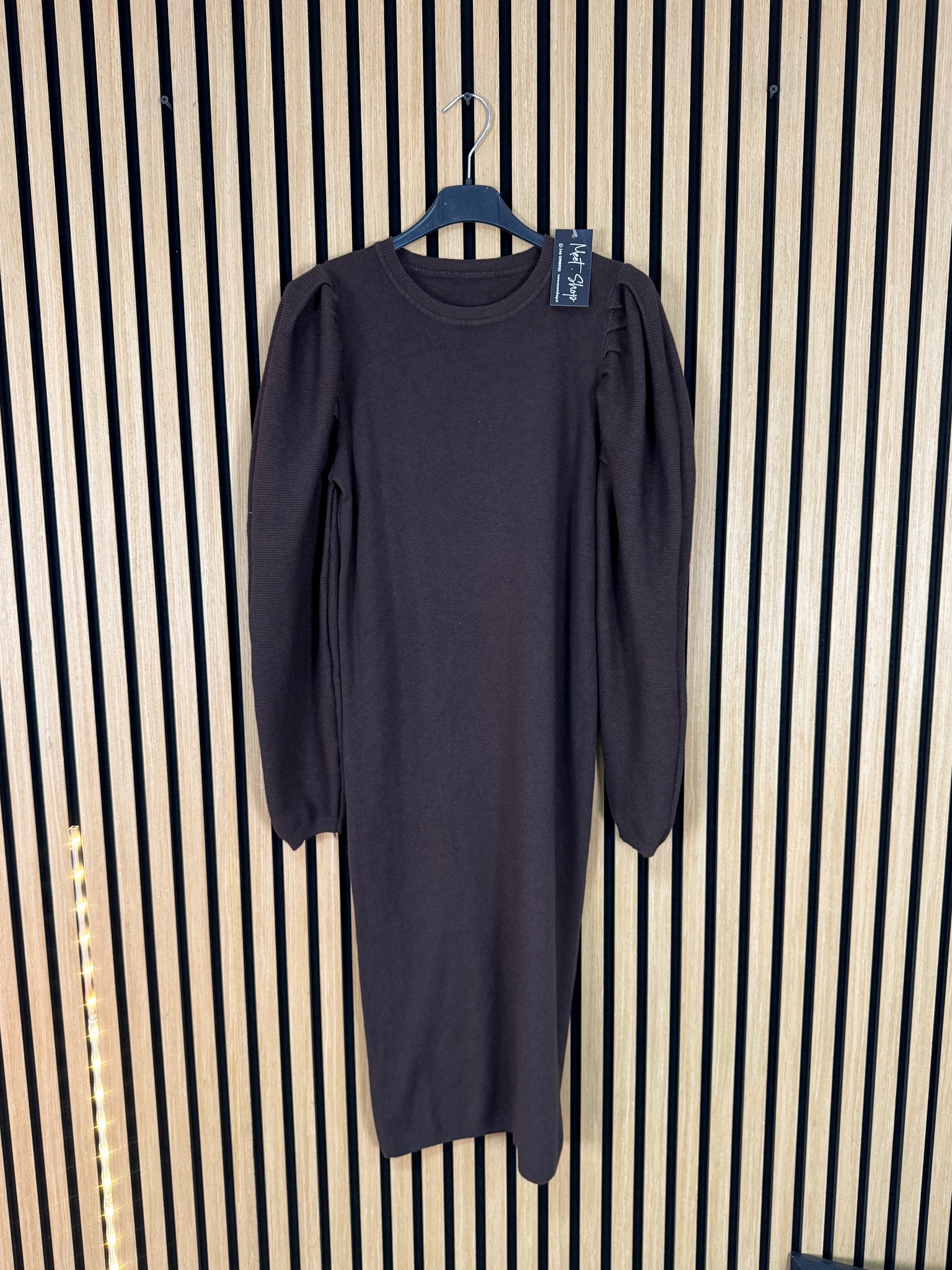 Abito lungo in maglina di viscosa con manica a sbuffo