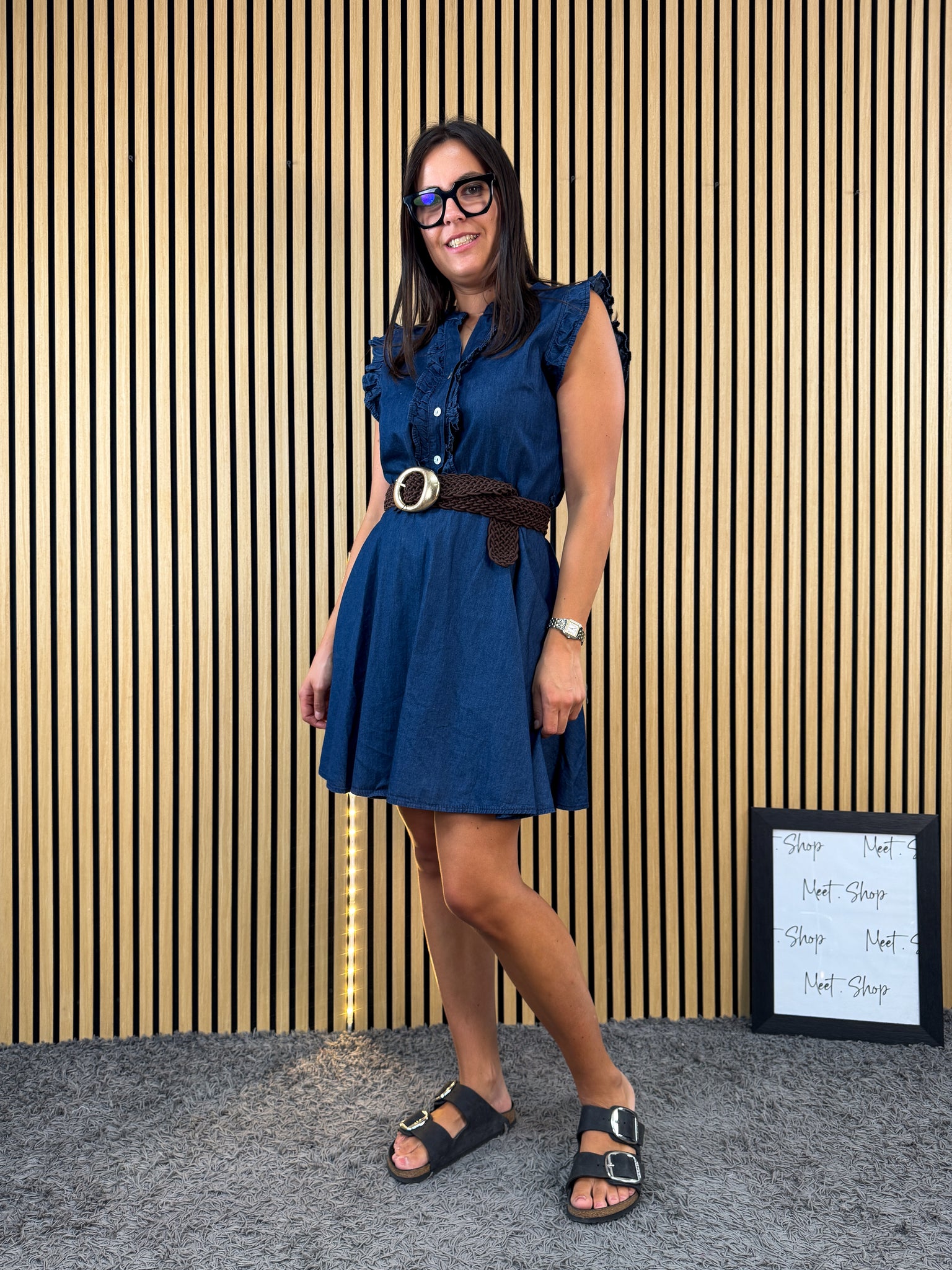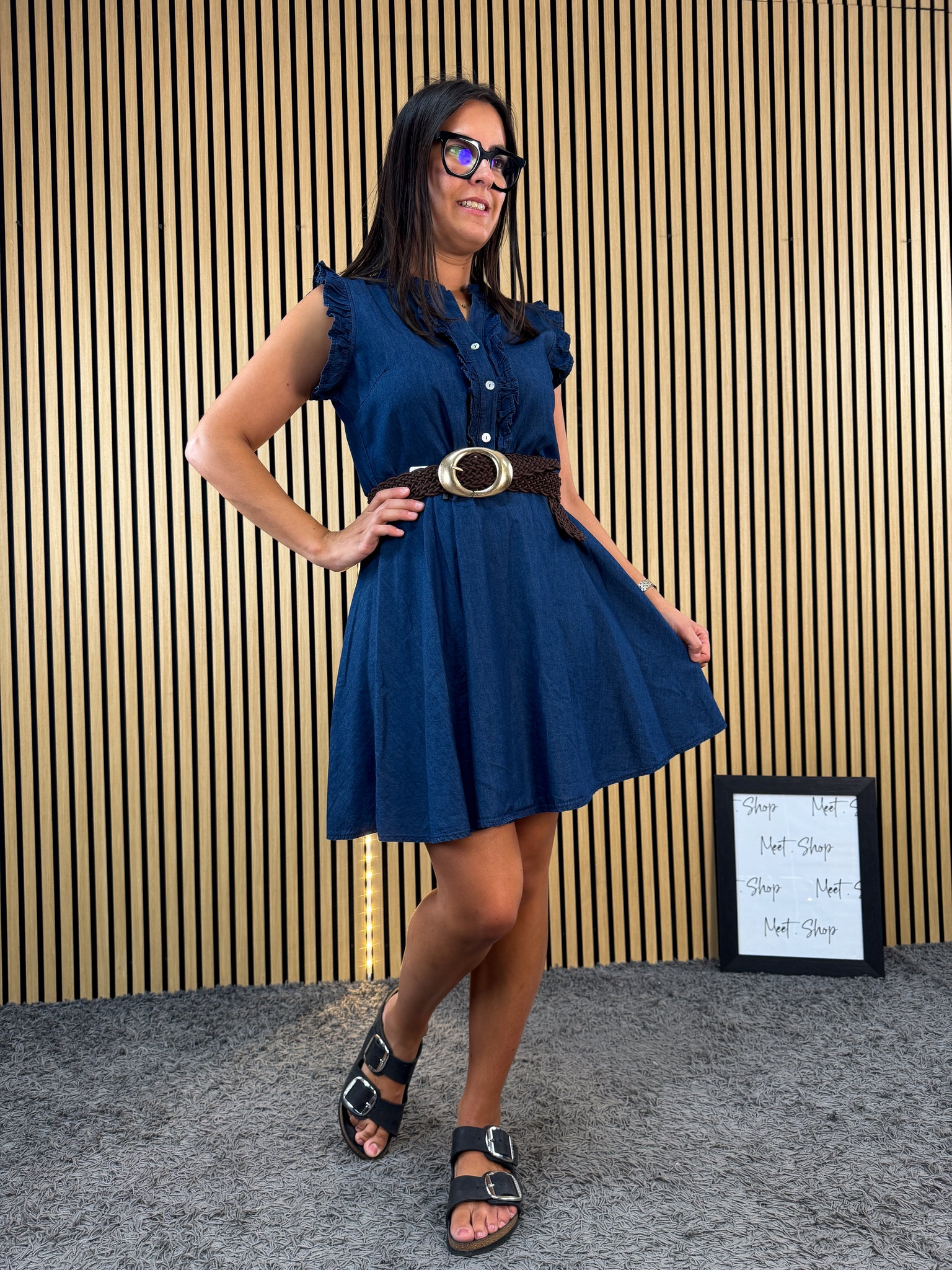Abito in cotone Jeans con bottoni e apertura al cuore