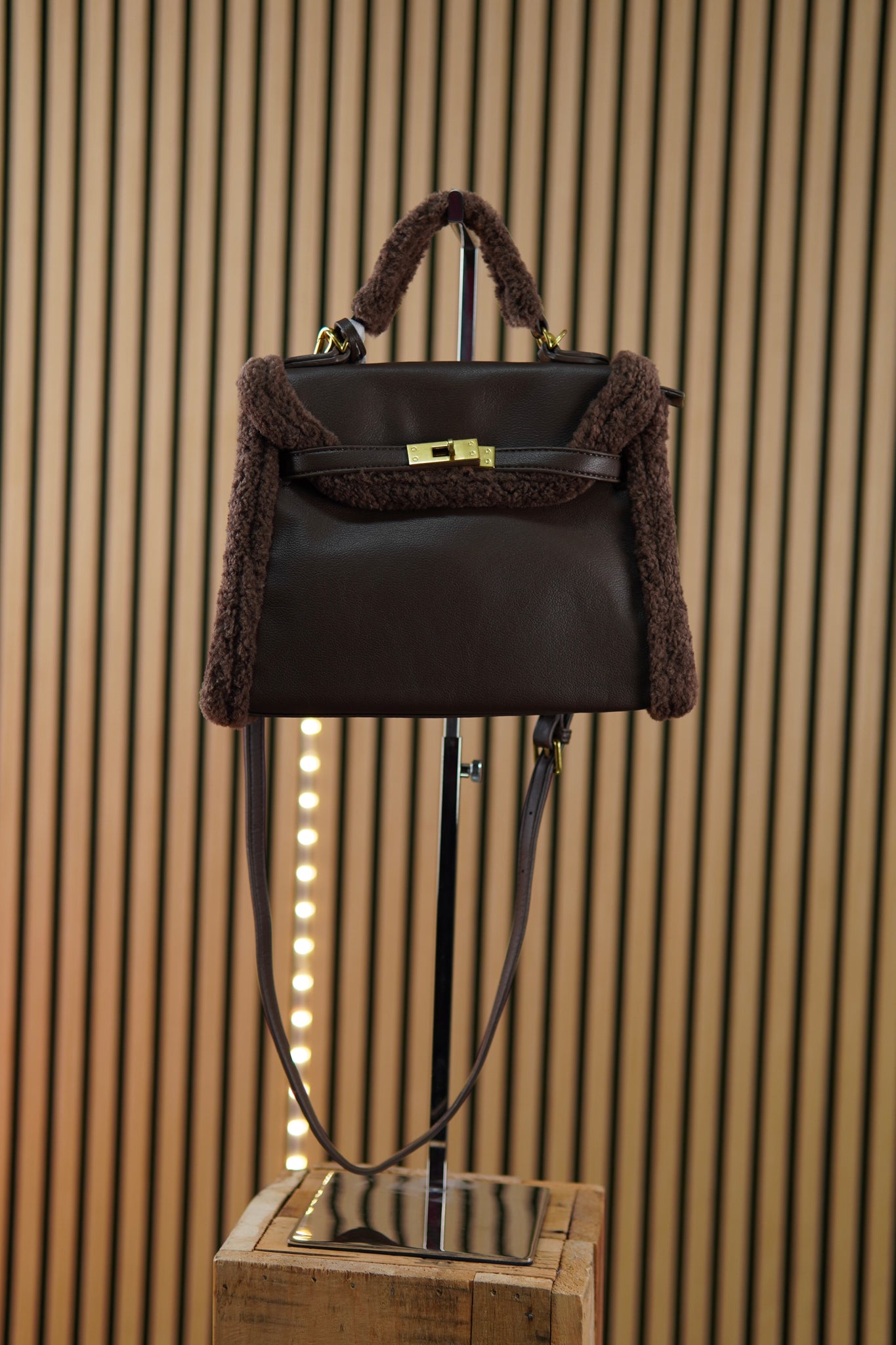 Borsa a mano e tracolla con pelliccia