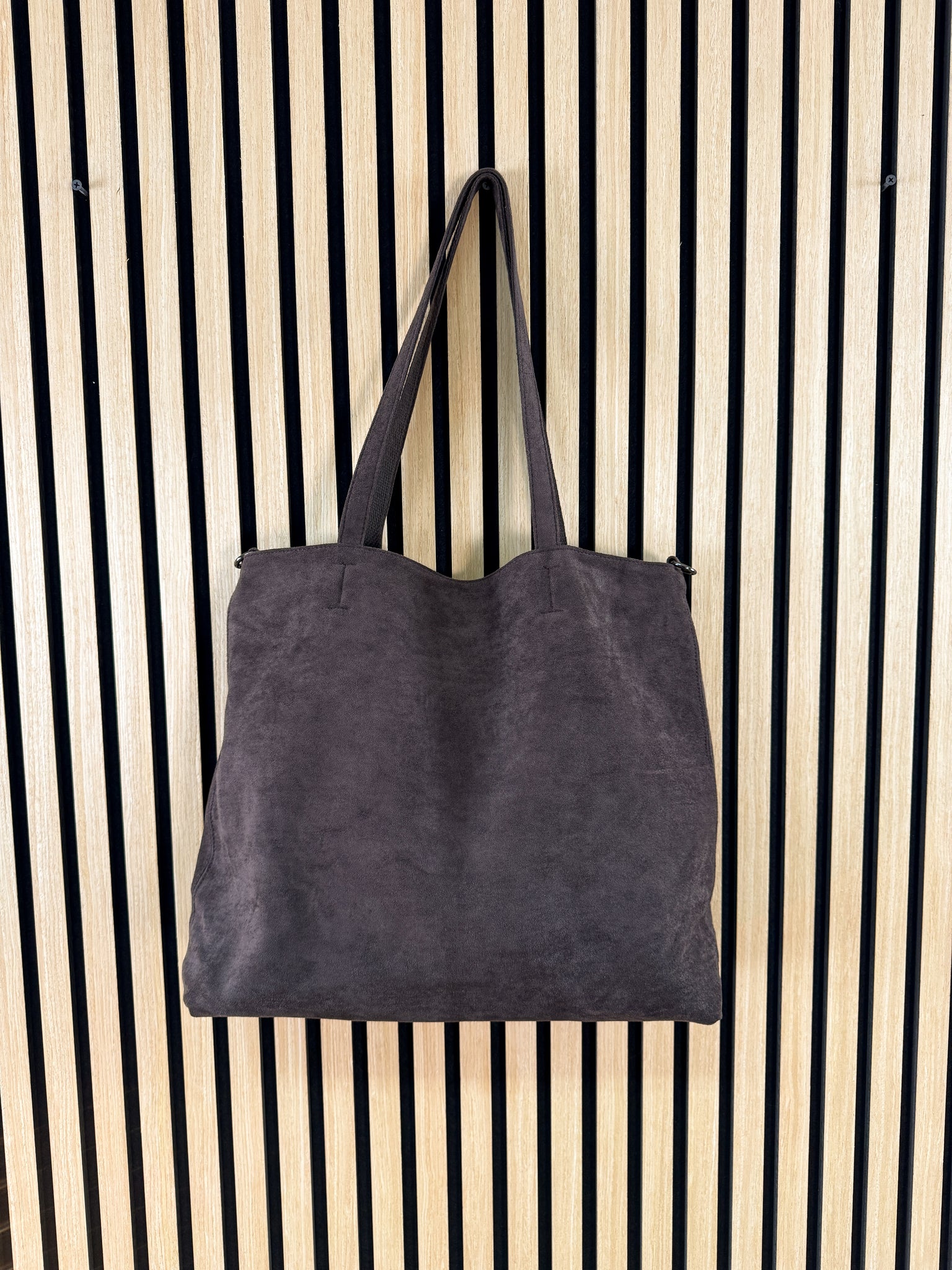 Borsa double face tinta unita/ leopardato, scamosciata con pochette e tracolla rimovibile.