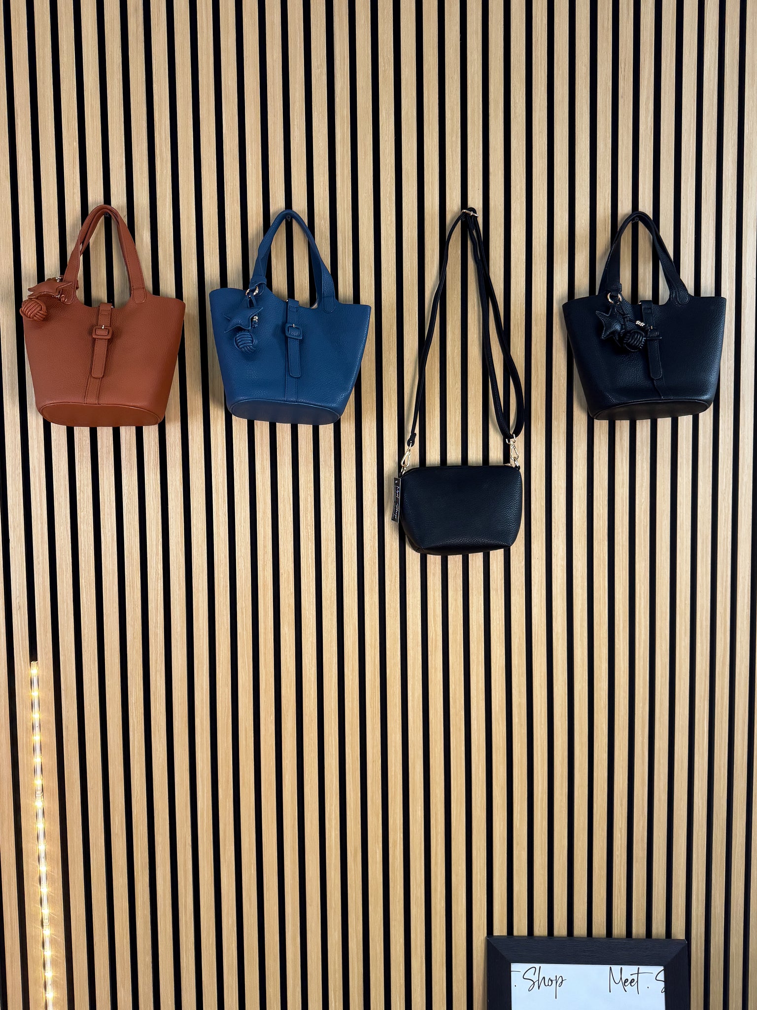 Borsa secchiello effetto pelle da portare a mano o con tracolla rimovibile