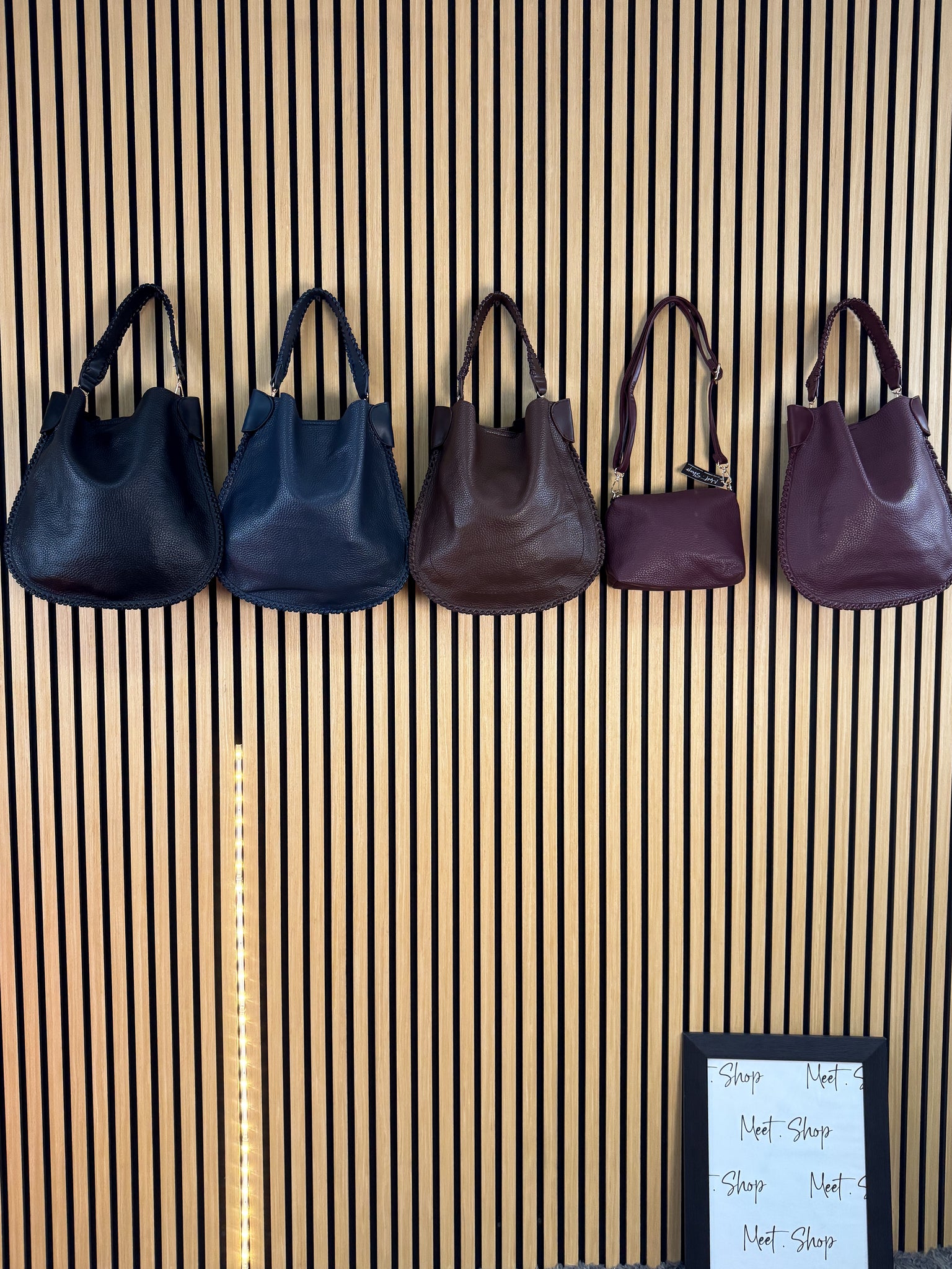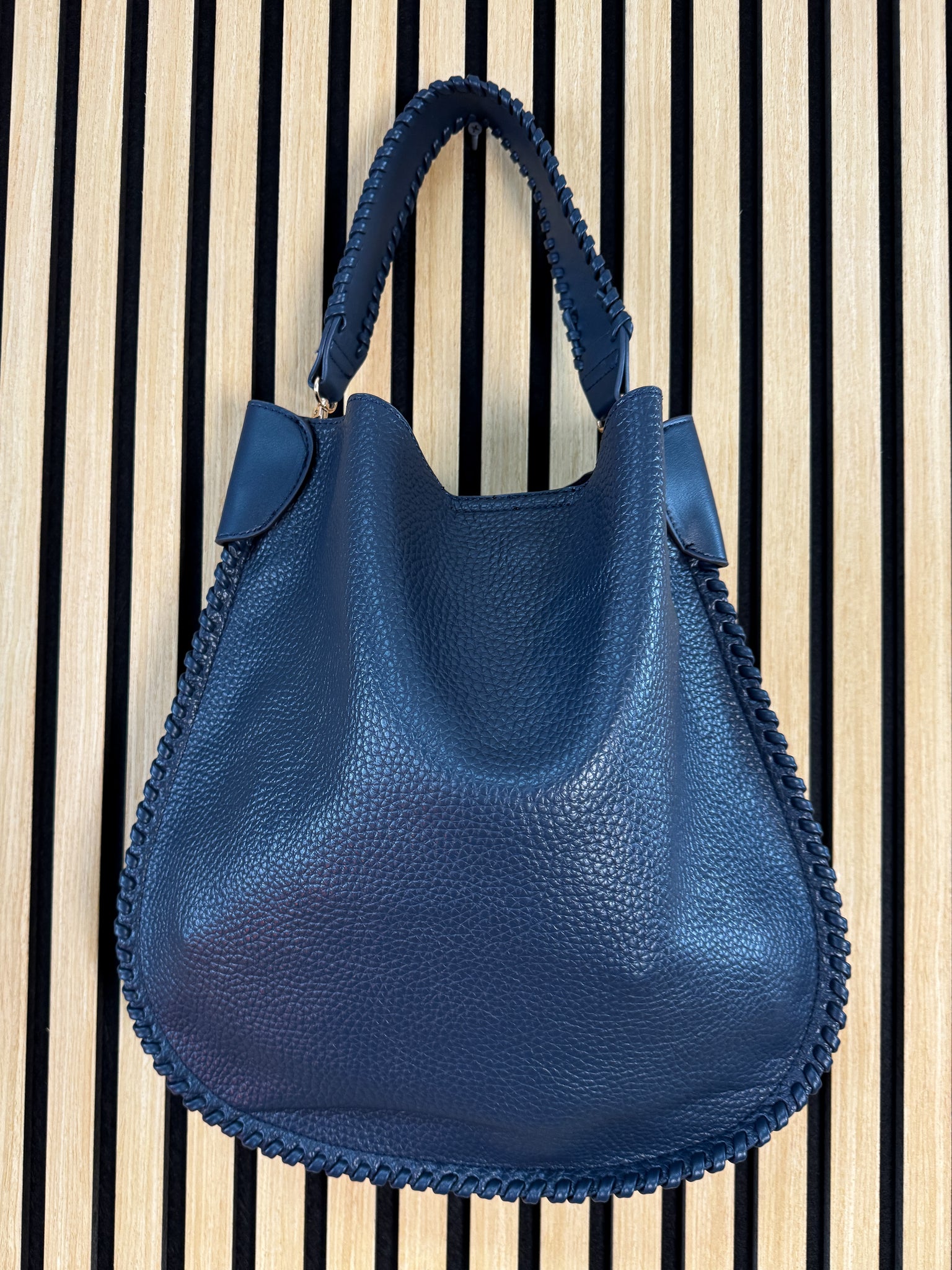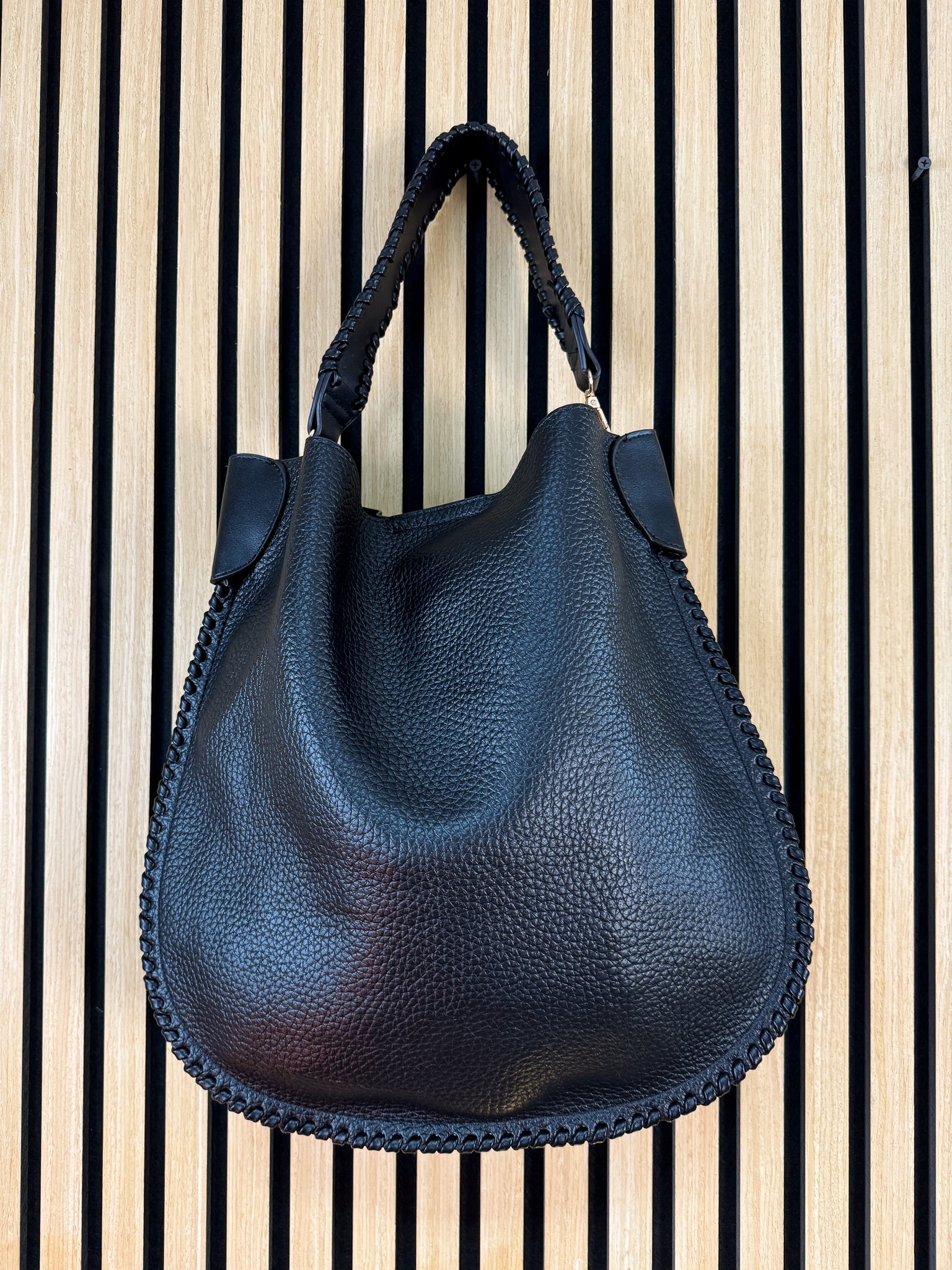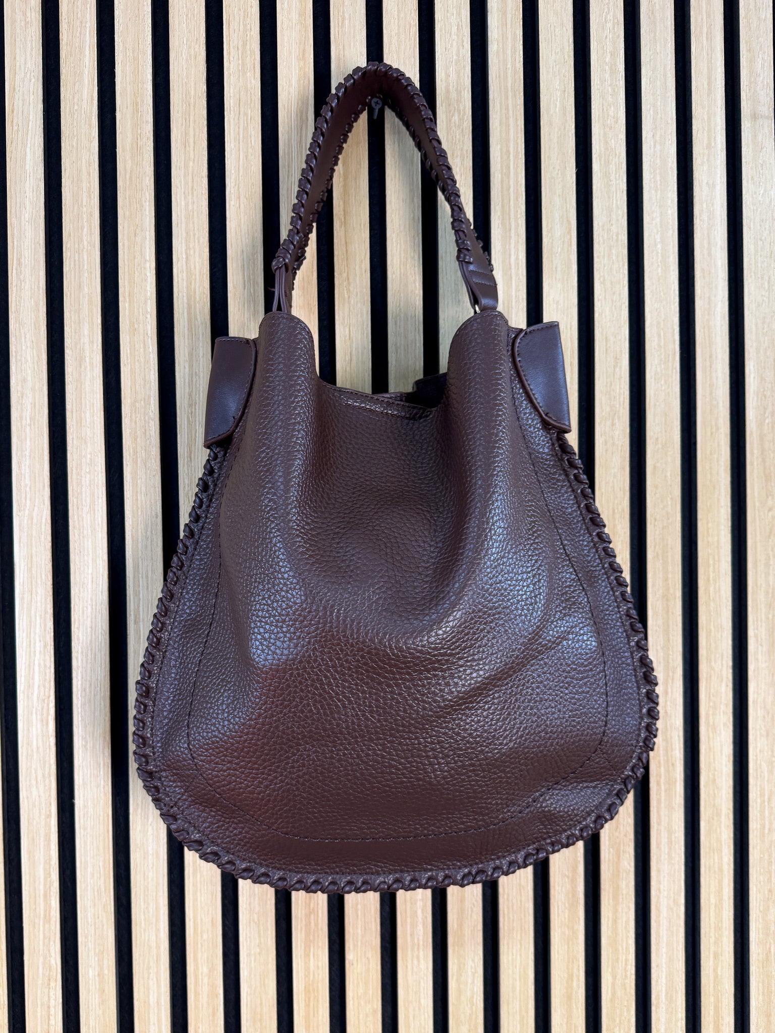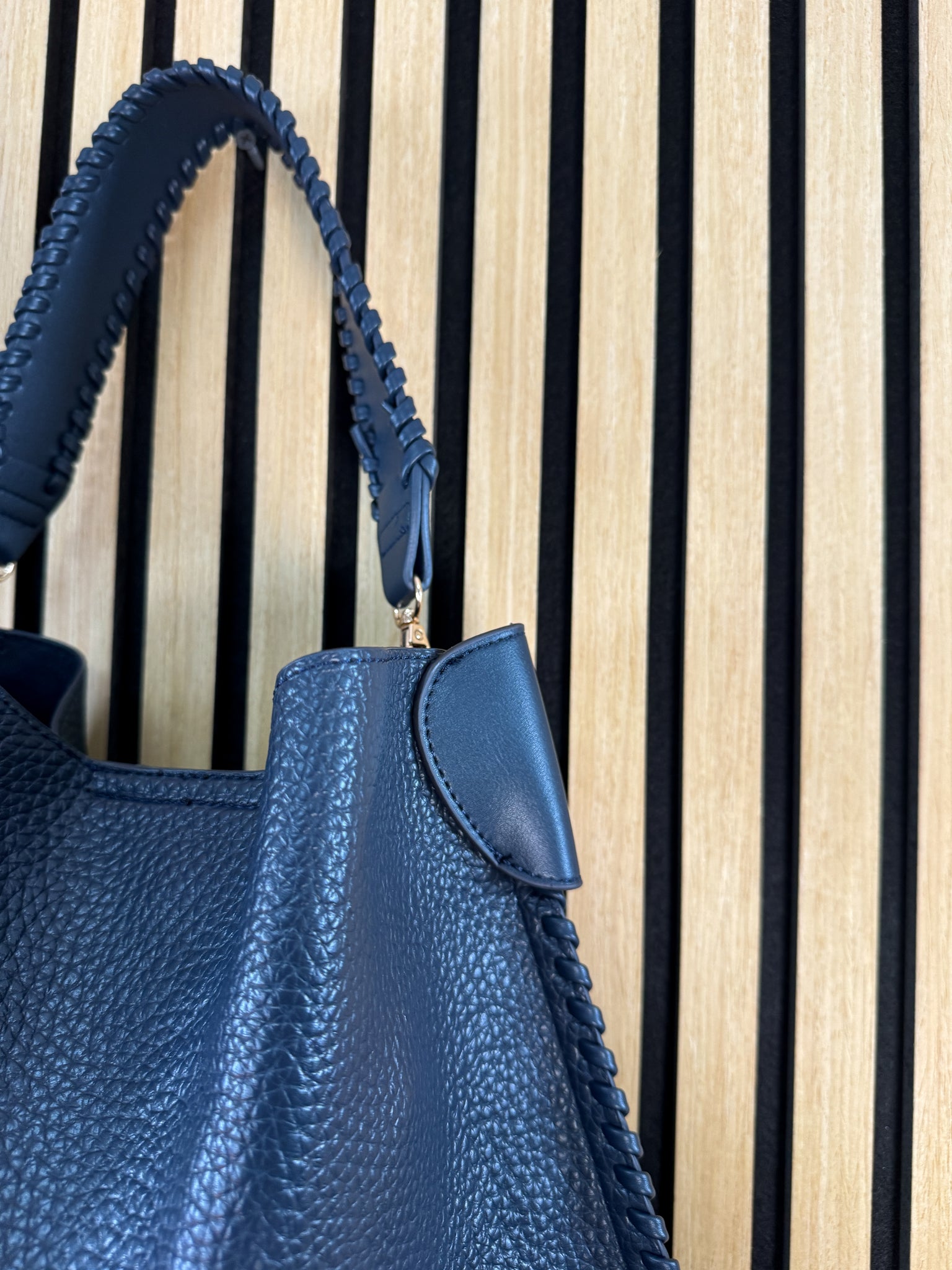 Borsa effetto pelle a spalla con tracolla intercambiabile.