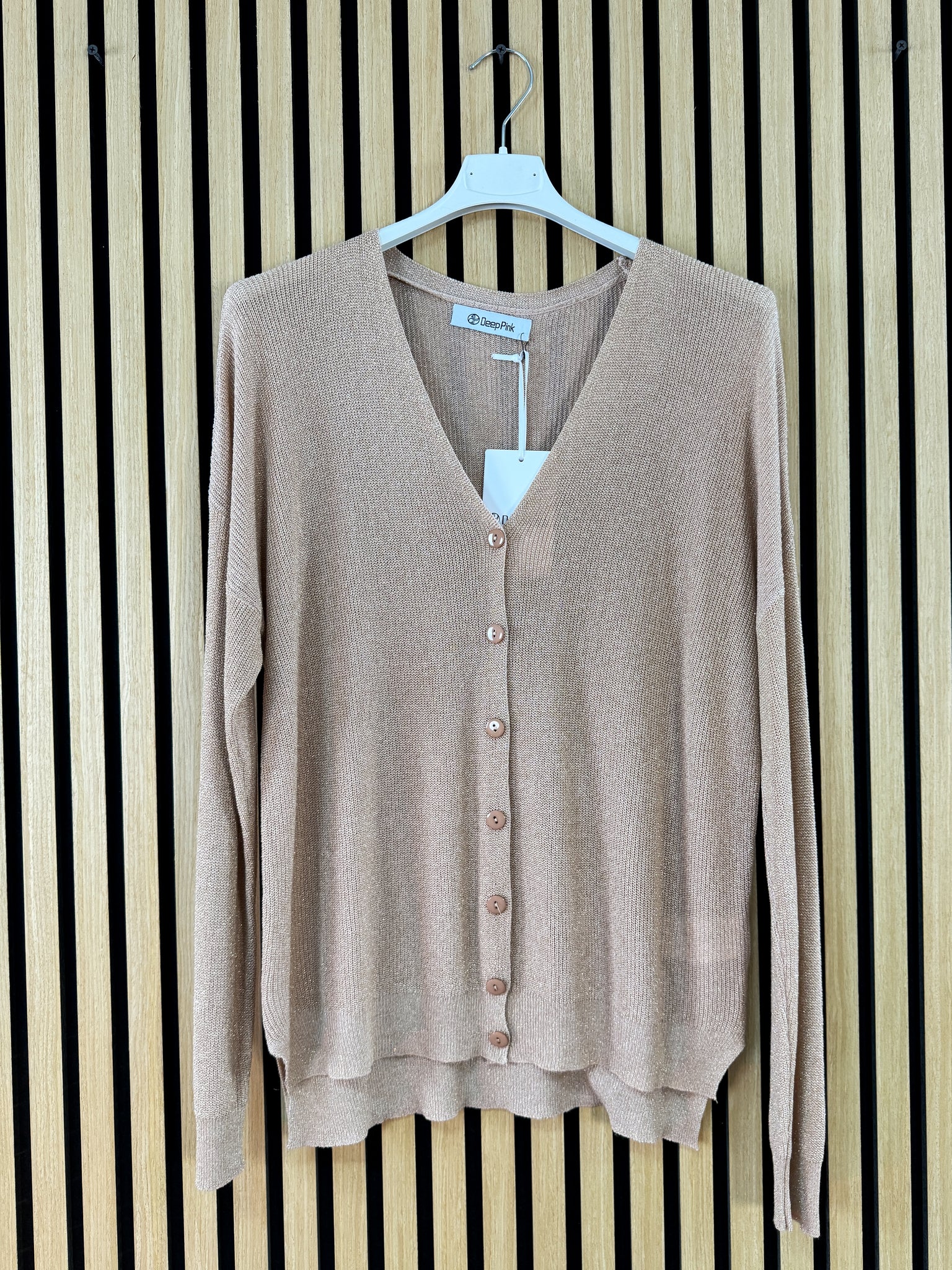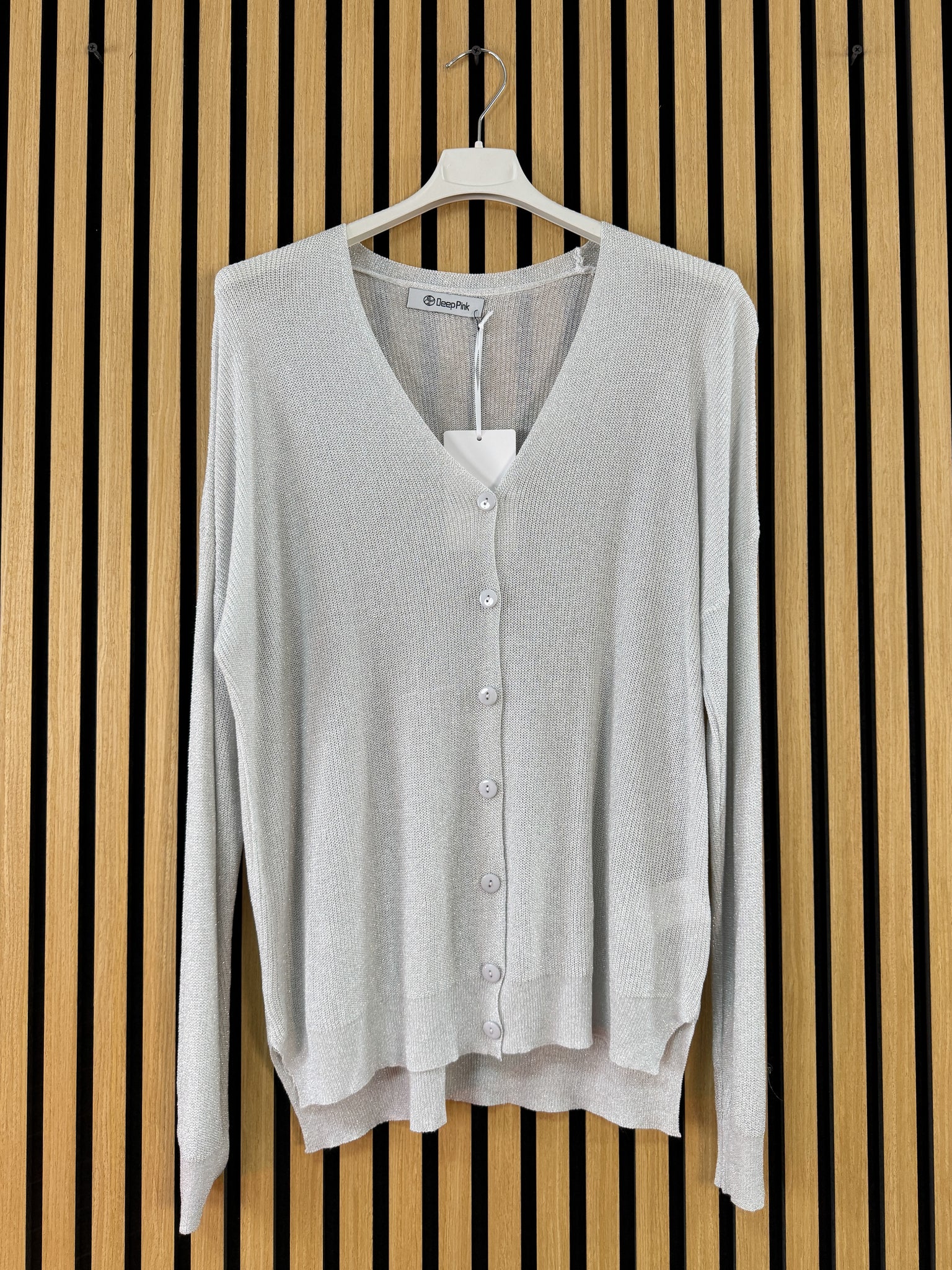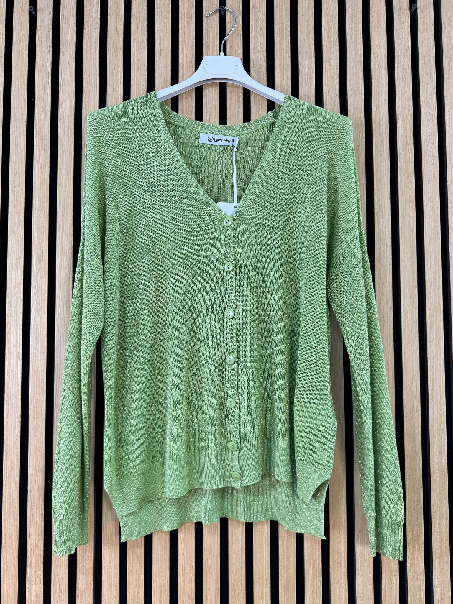 Cardigan in viscosa elasticizzata con filamento di lurex.