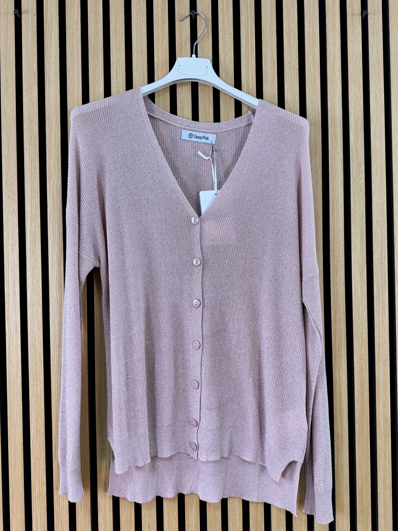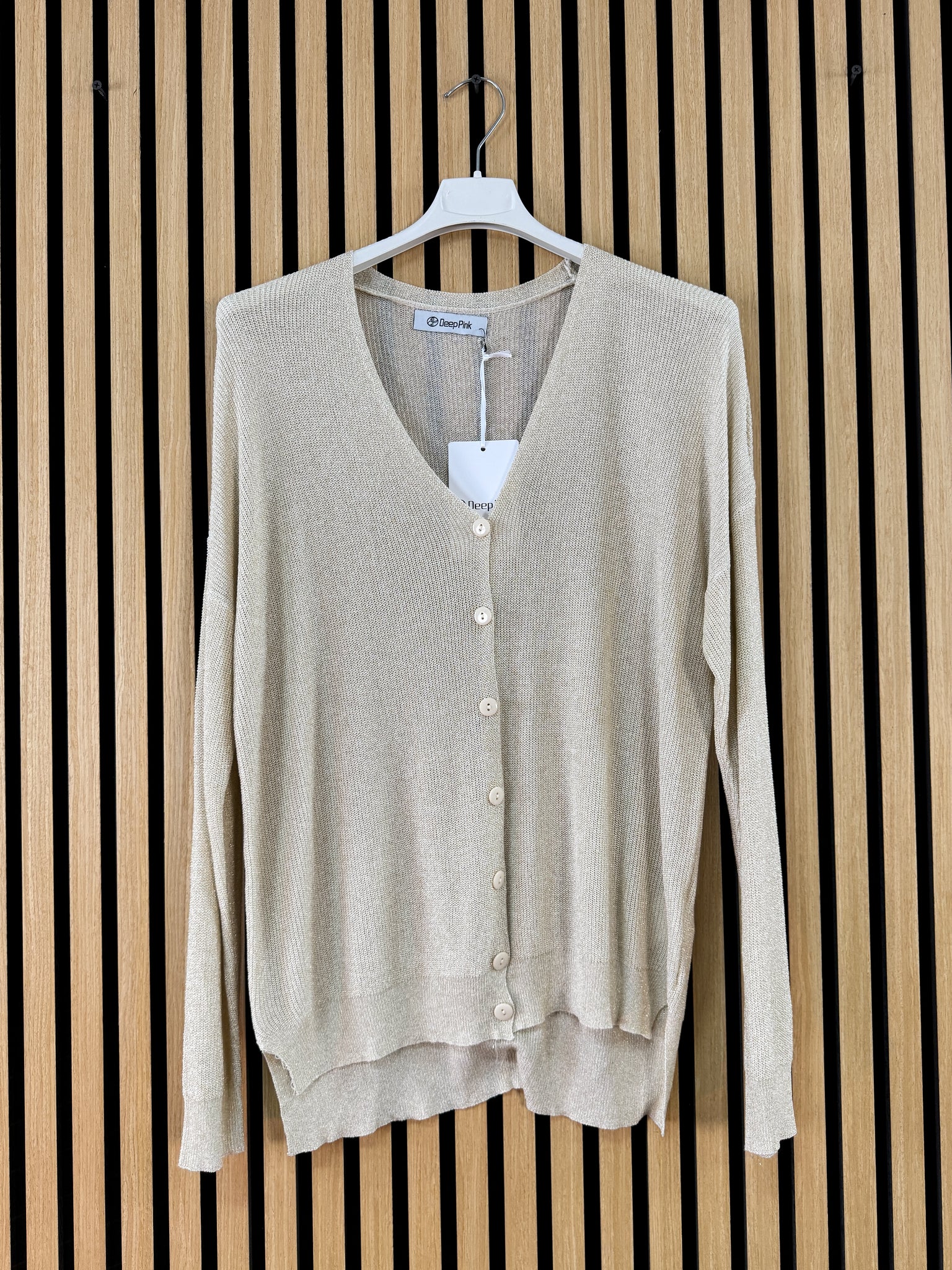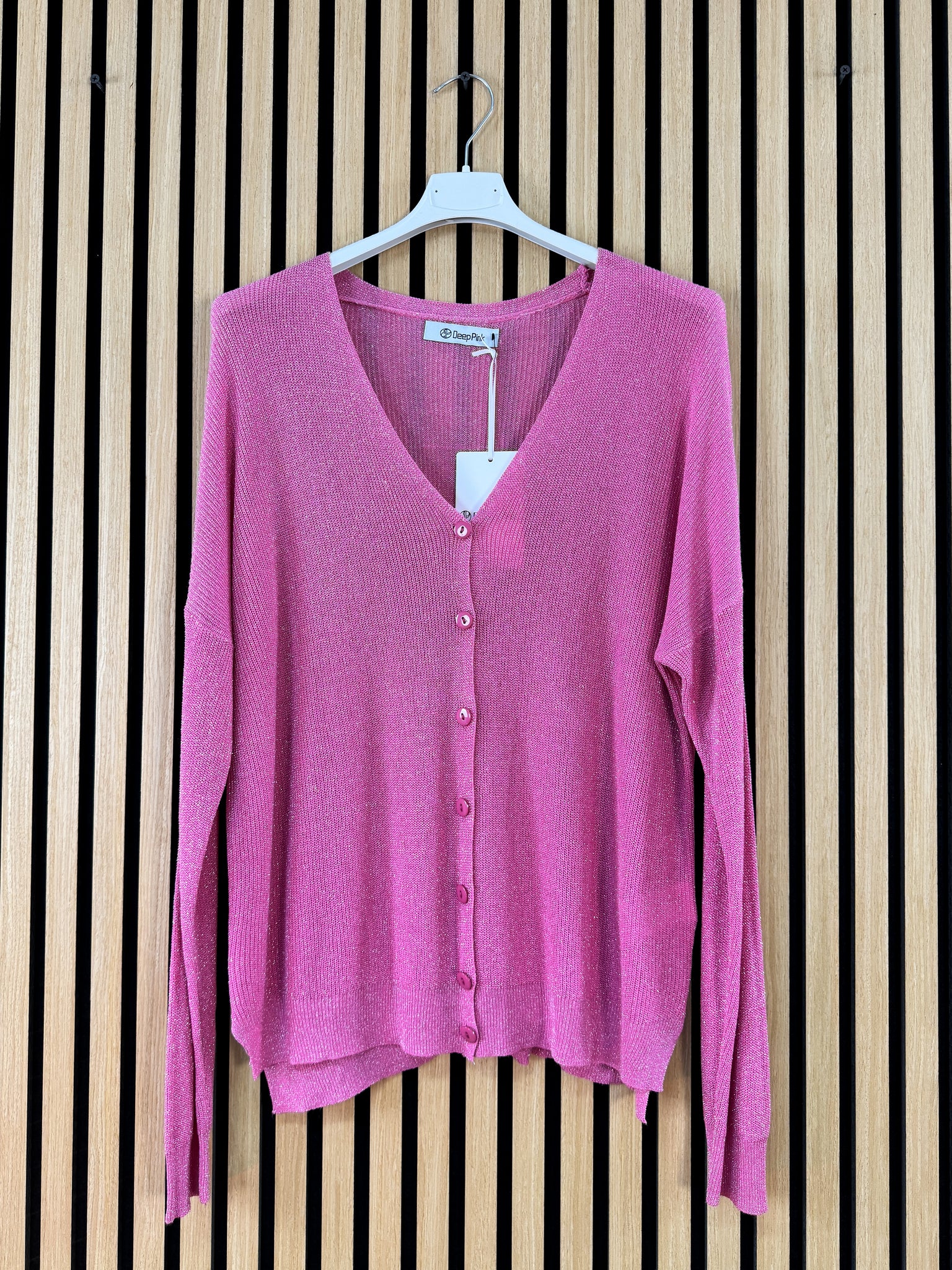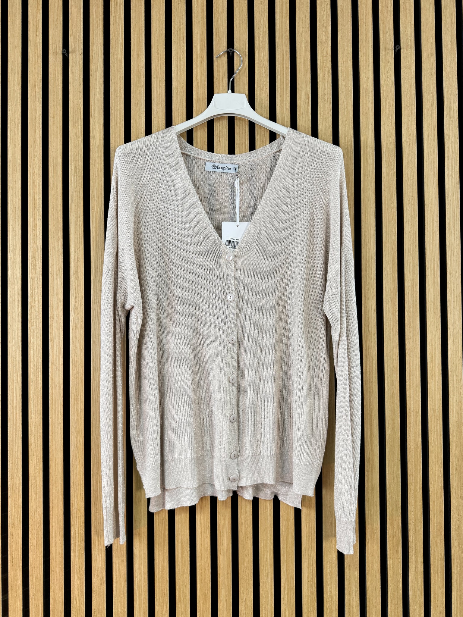 Cardigan in viscosa elasticizzata con filamento di lurex.