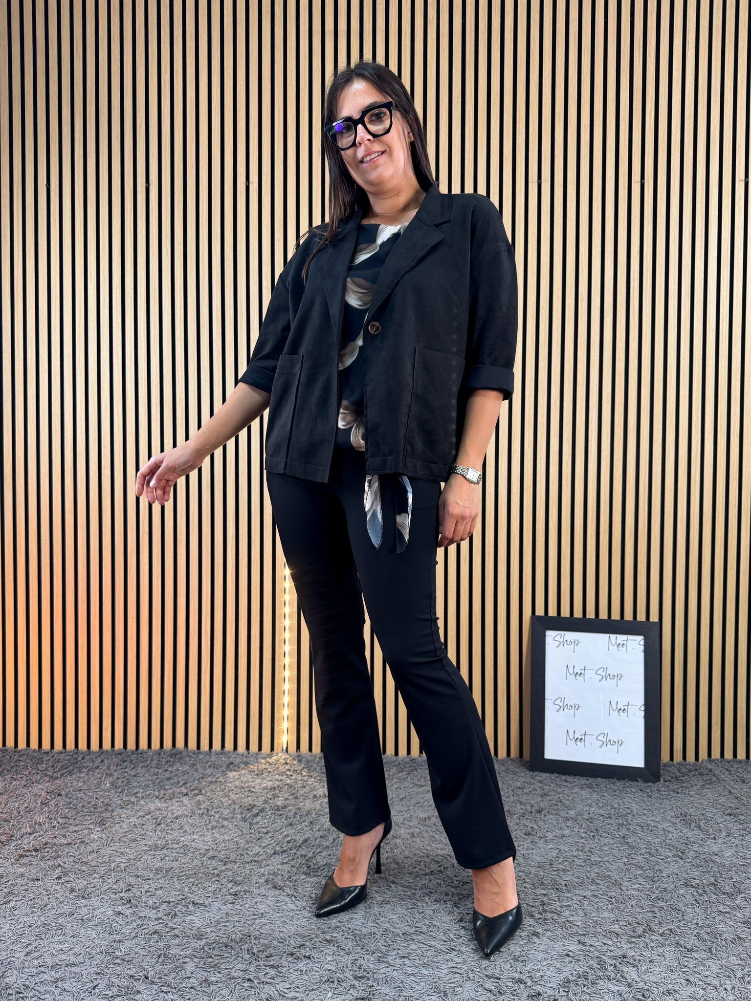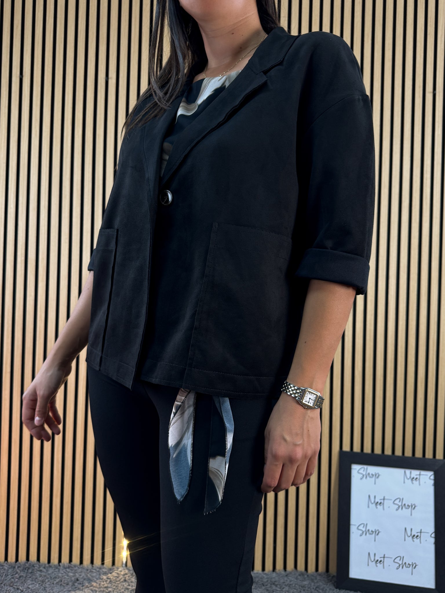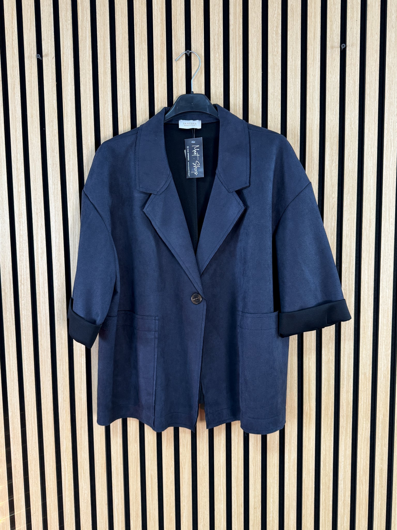 Giacca scamosciata con tasche frintali e chiusura con bottone.
