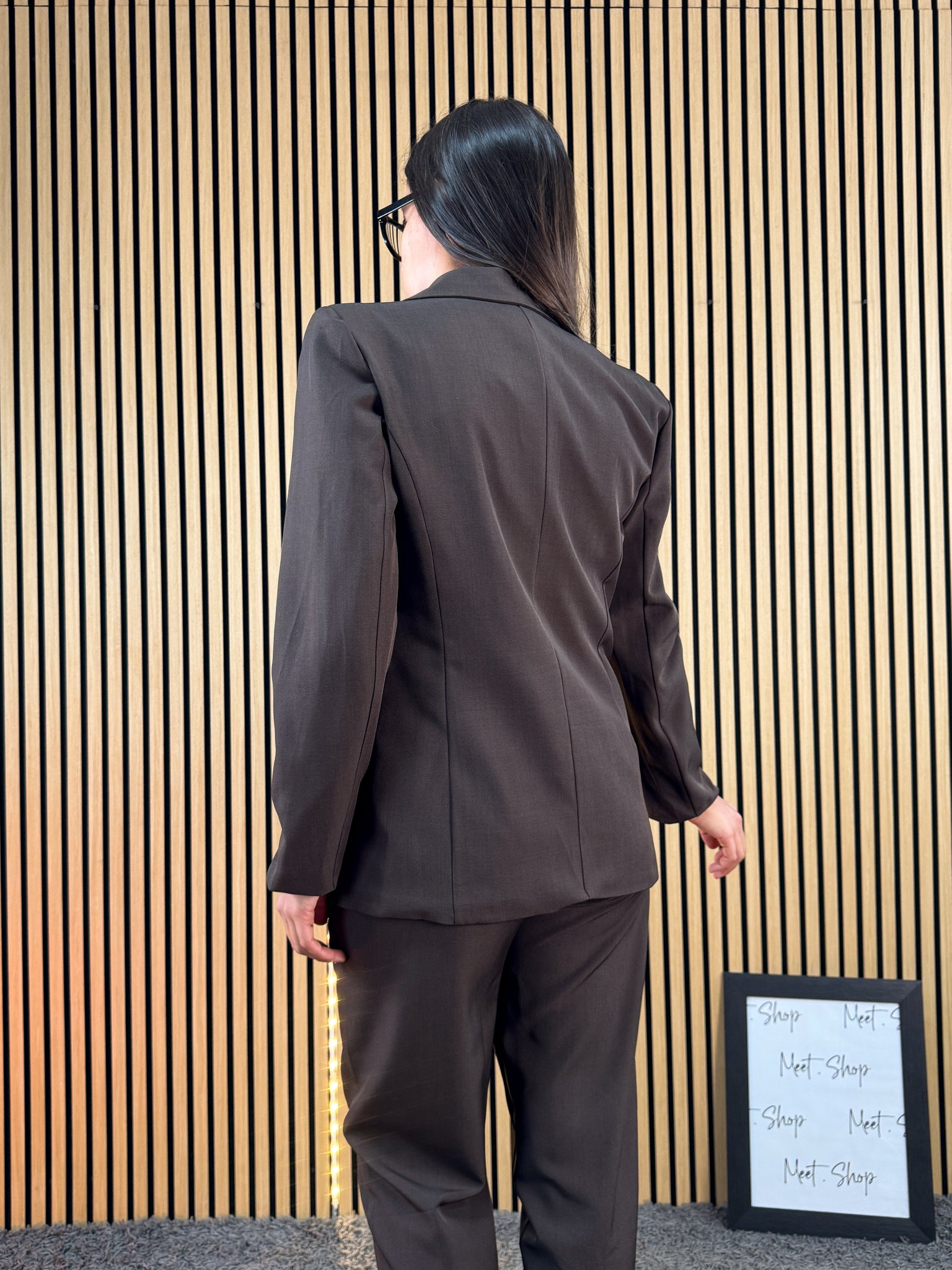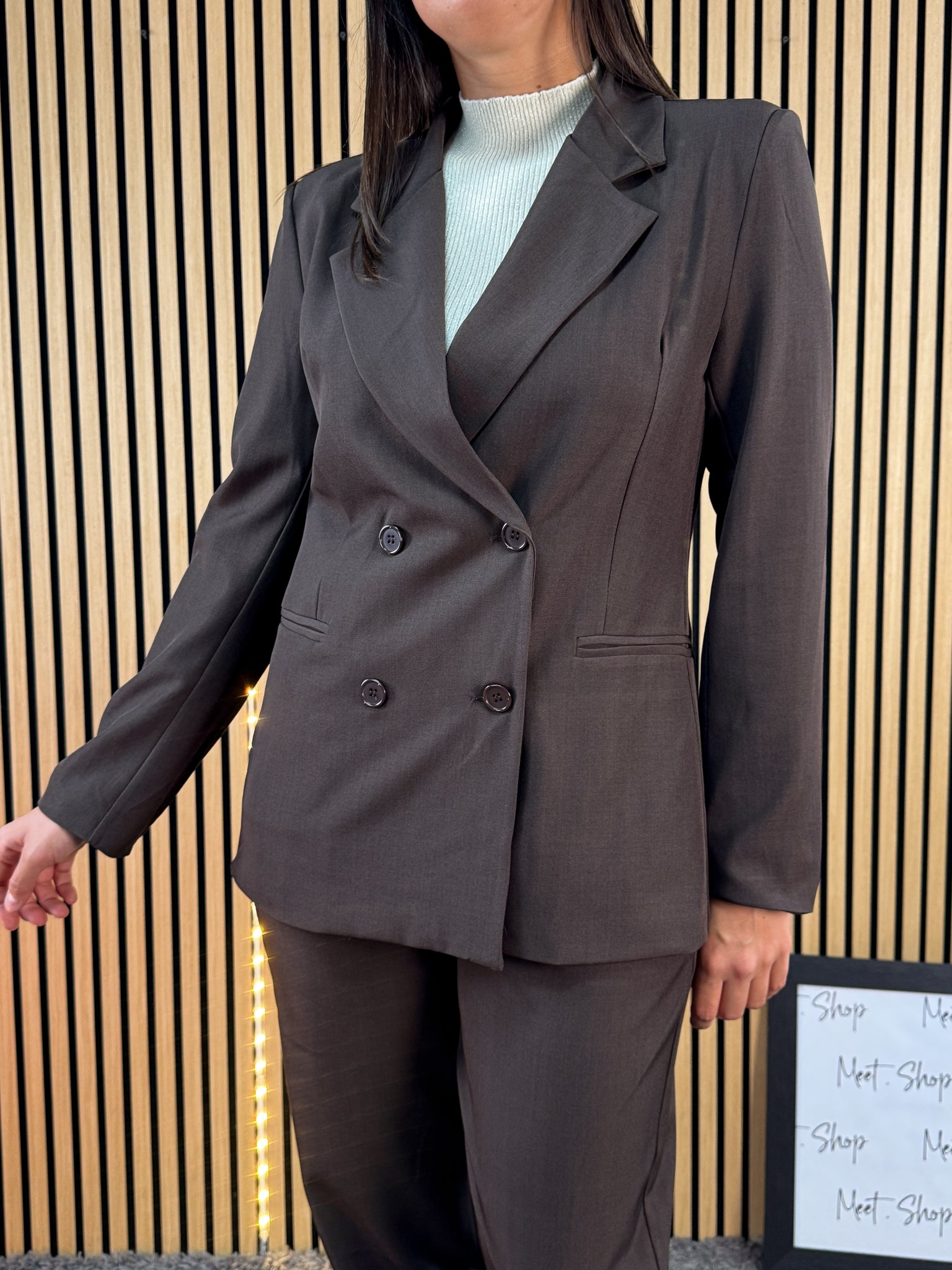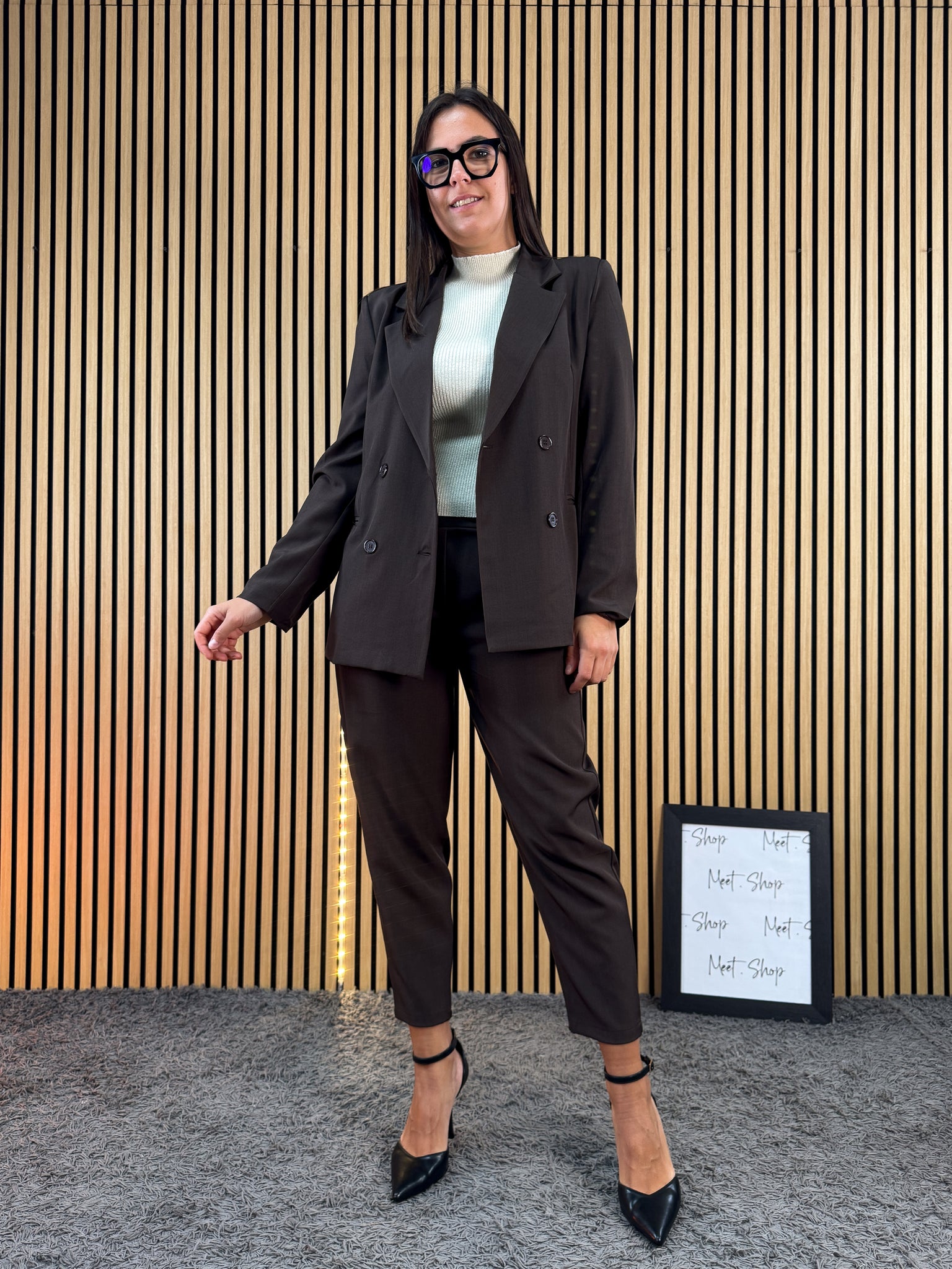 Giacca doppio petto foderata con spalla imbottita, abbinata al Pantalone Irene
