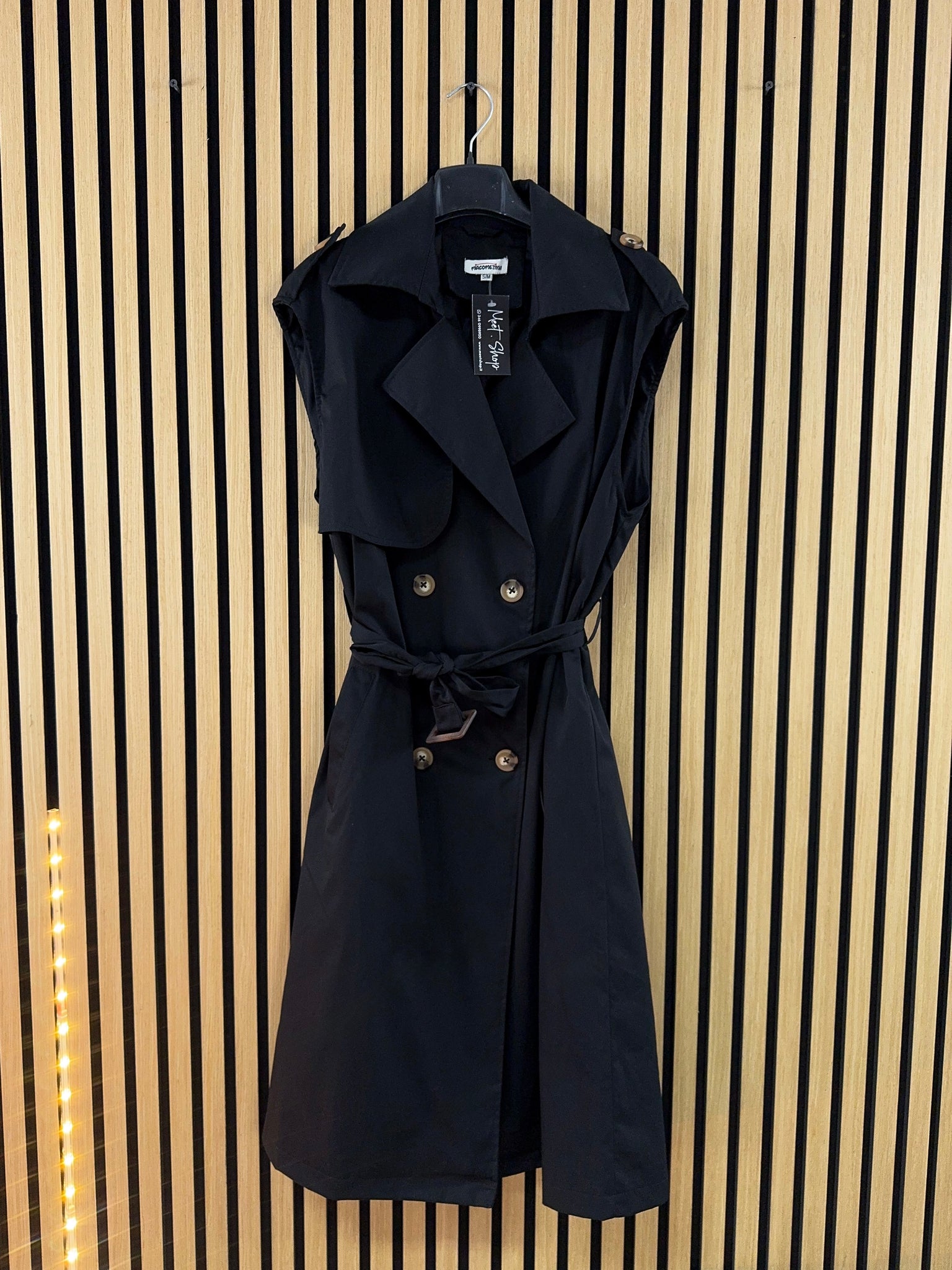 Giacca trench Gilet smanicata con chiusura doppio petto e cintura.