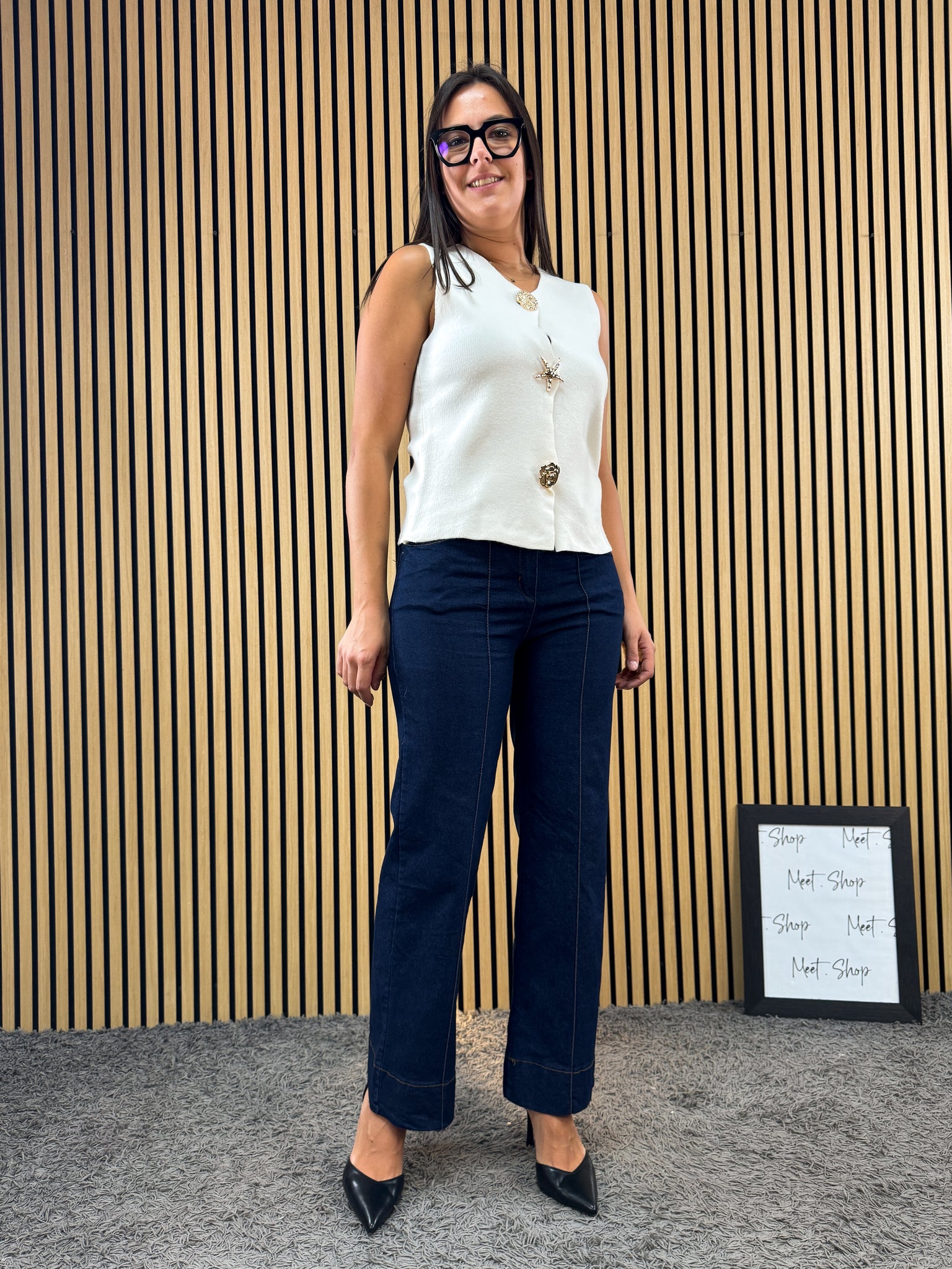 Gilet in viscosa elasticizzata con chiusura con 3 spille color oro.