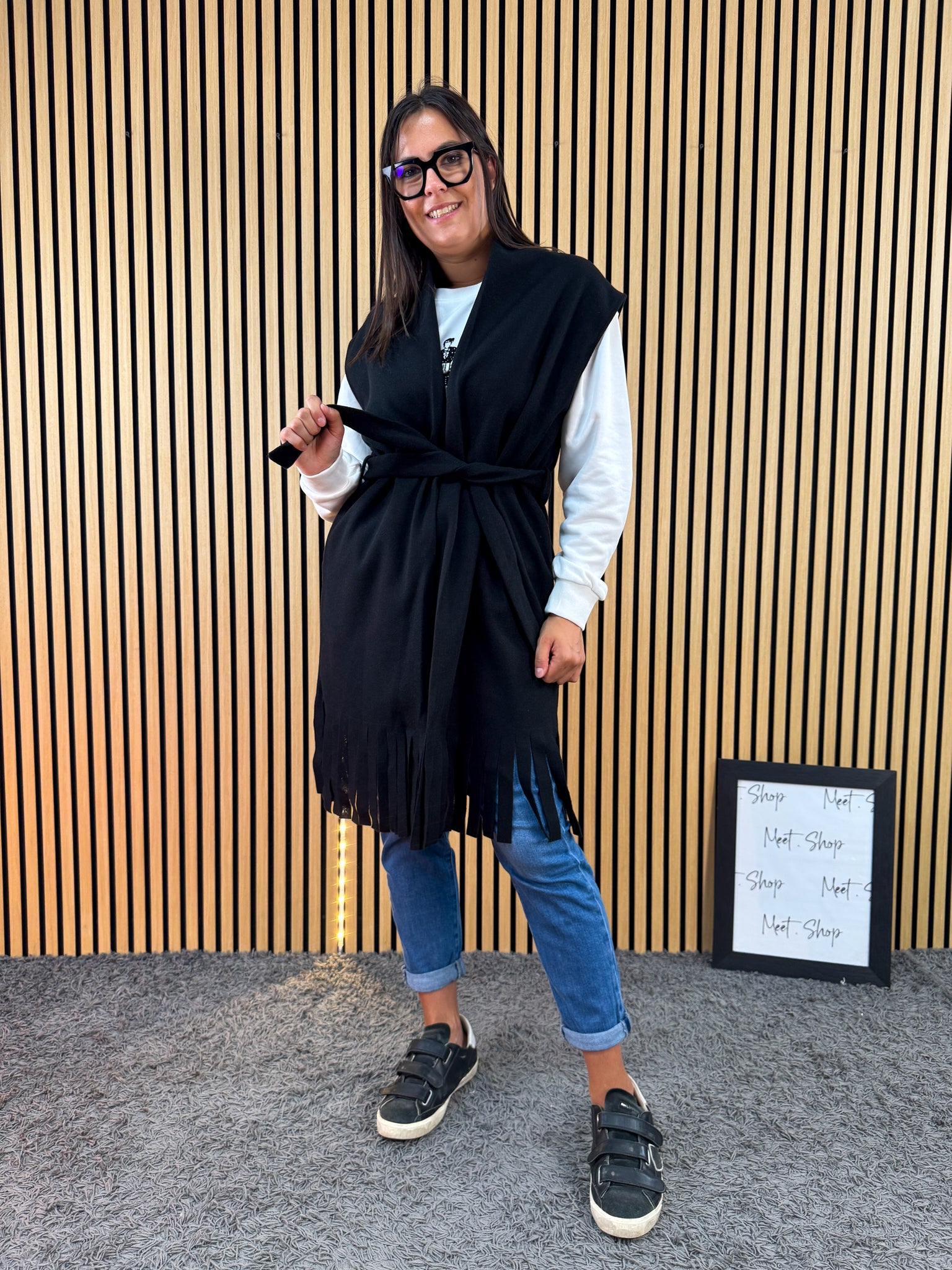 Cappotto smanicato con frange