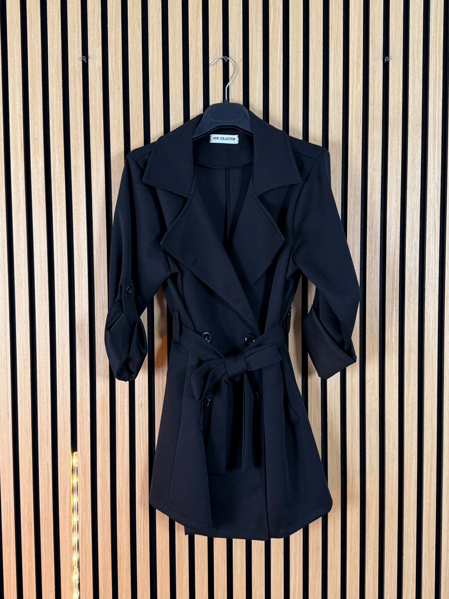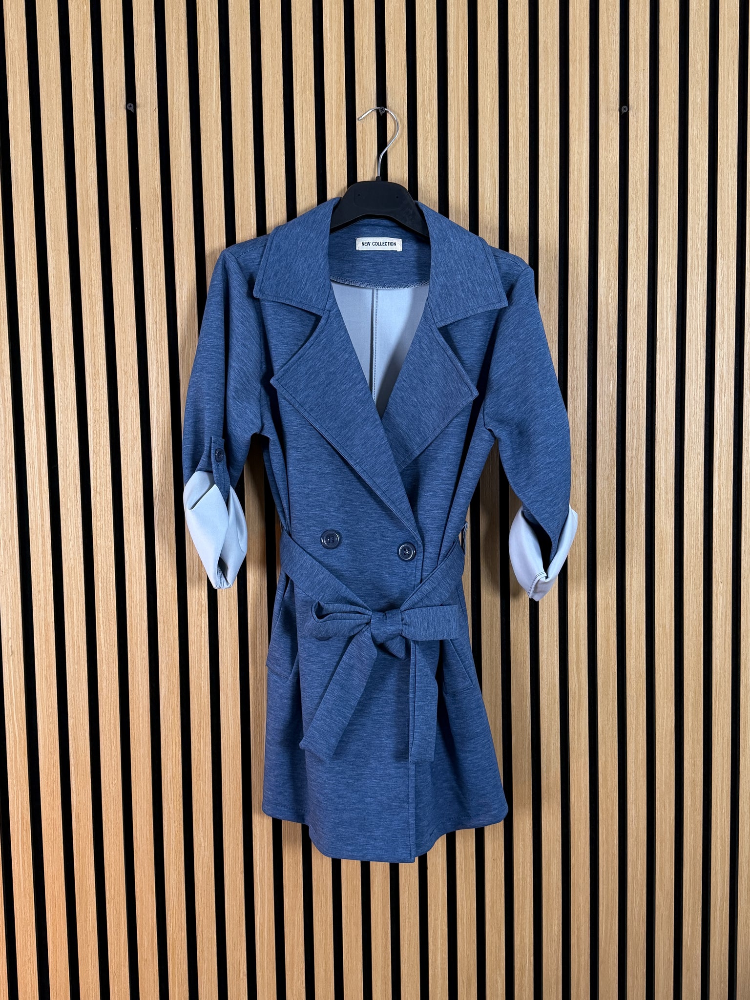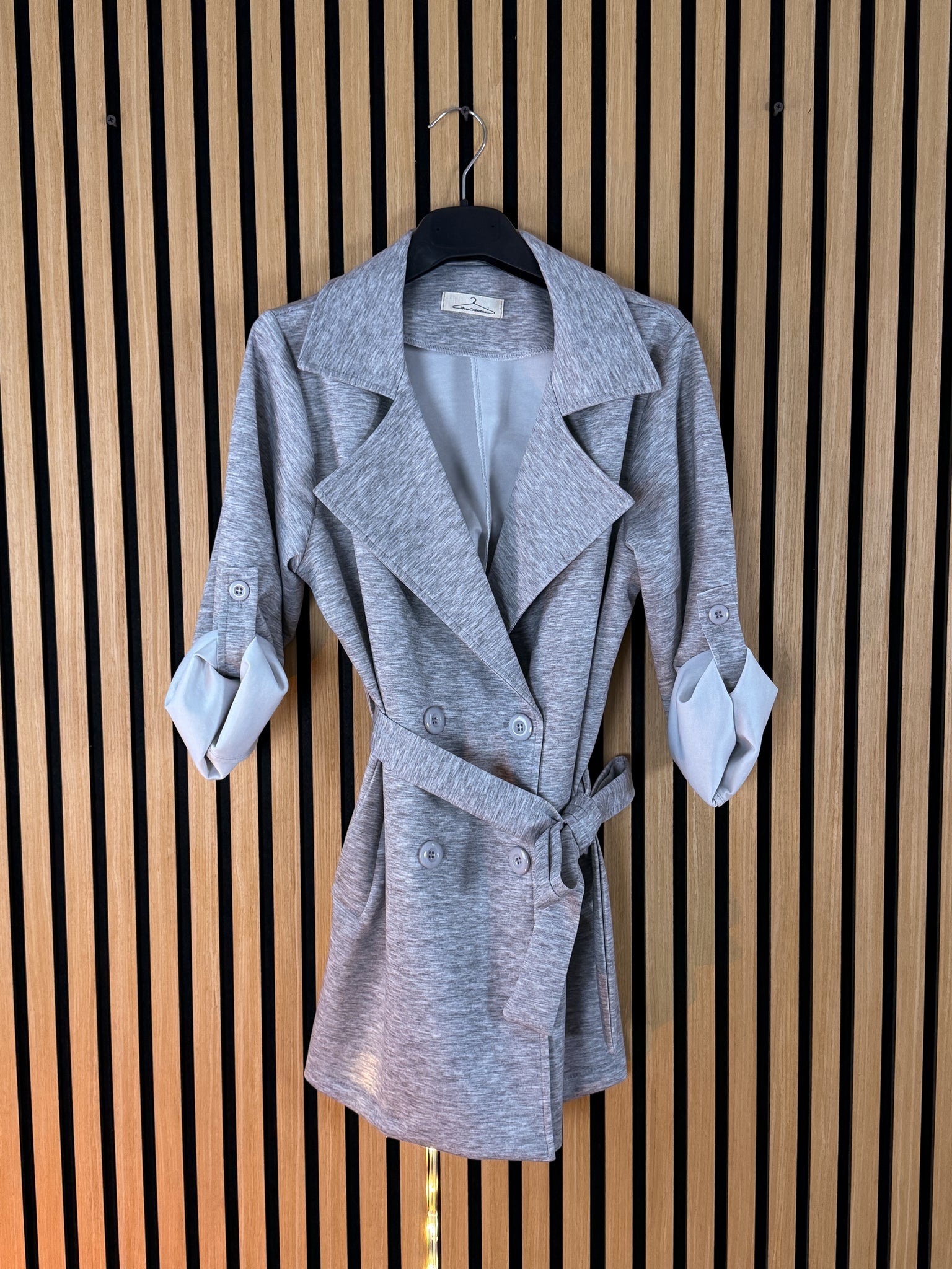 Giacca Trench con chiusura a bottoni e alamaro nella manica per accorciarla a 3/4 .