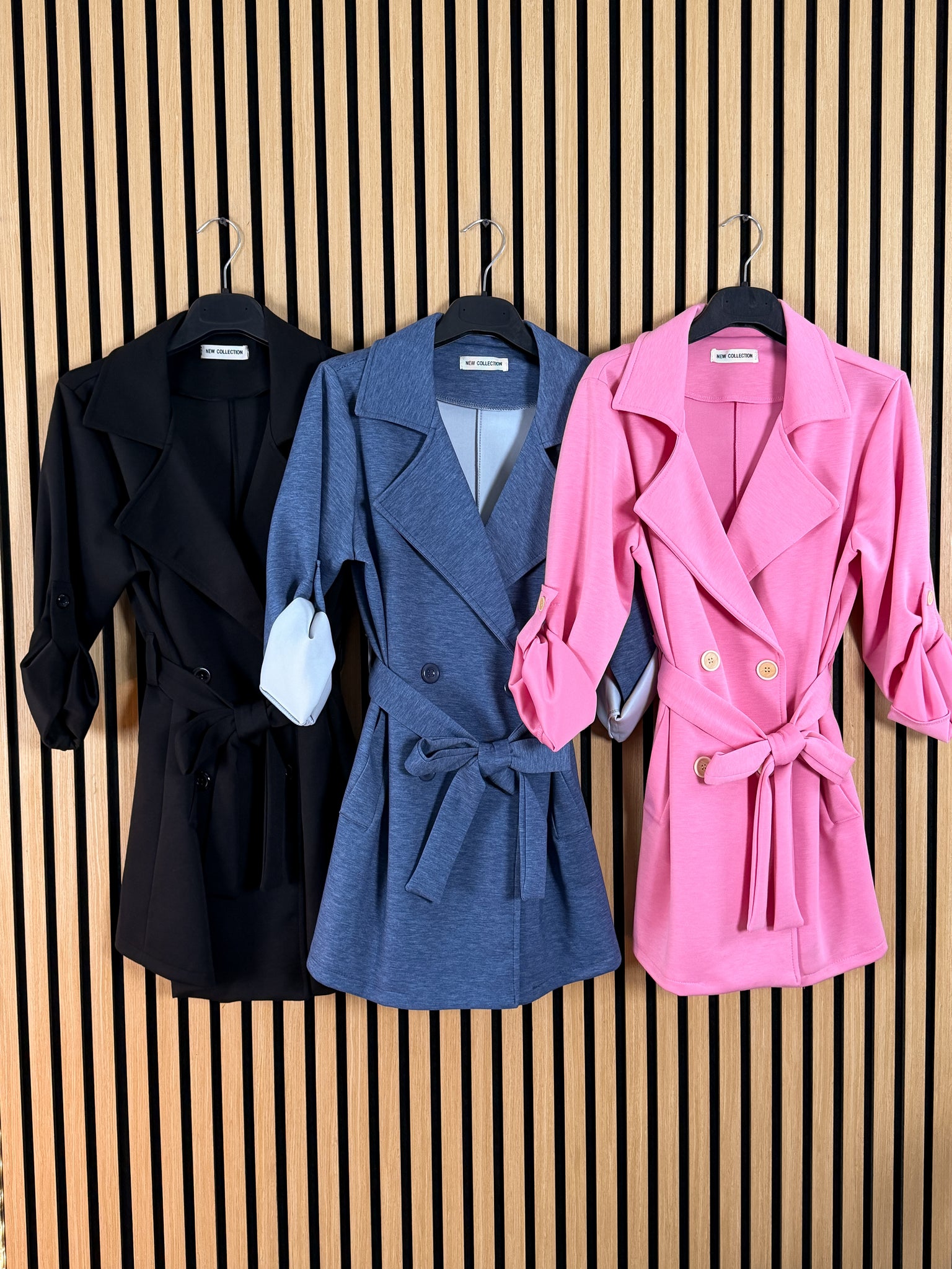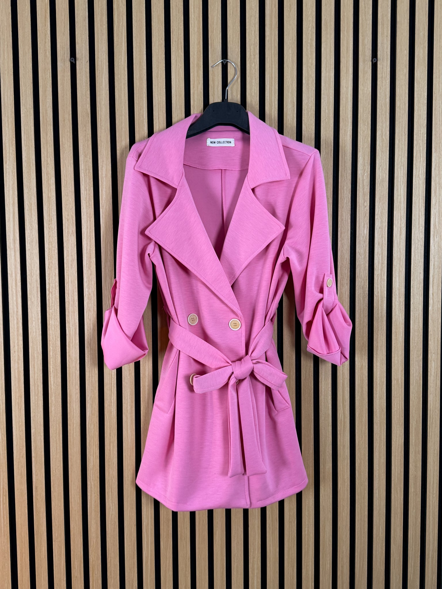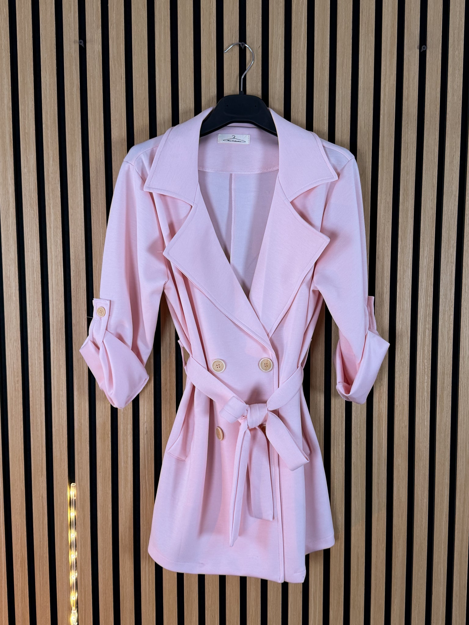 Giacca Trench con chiusura a bottoni e alamaro nella manica per accorciarla a 3/4 .