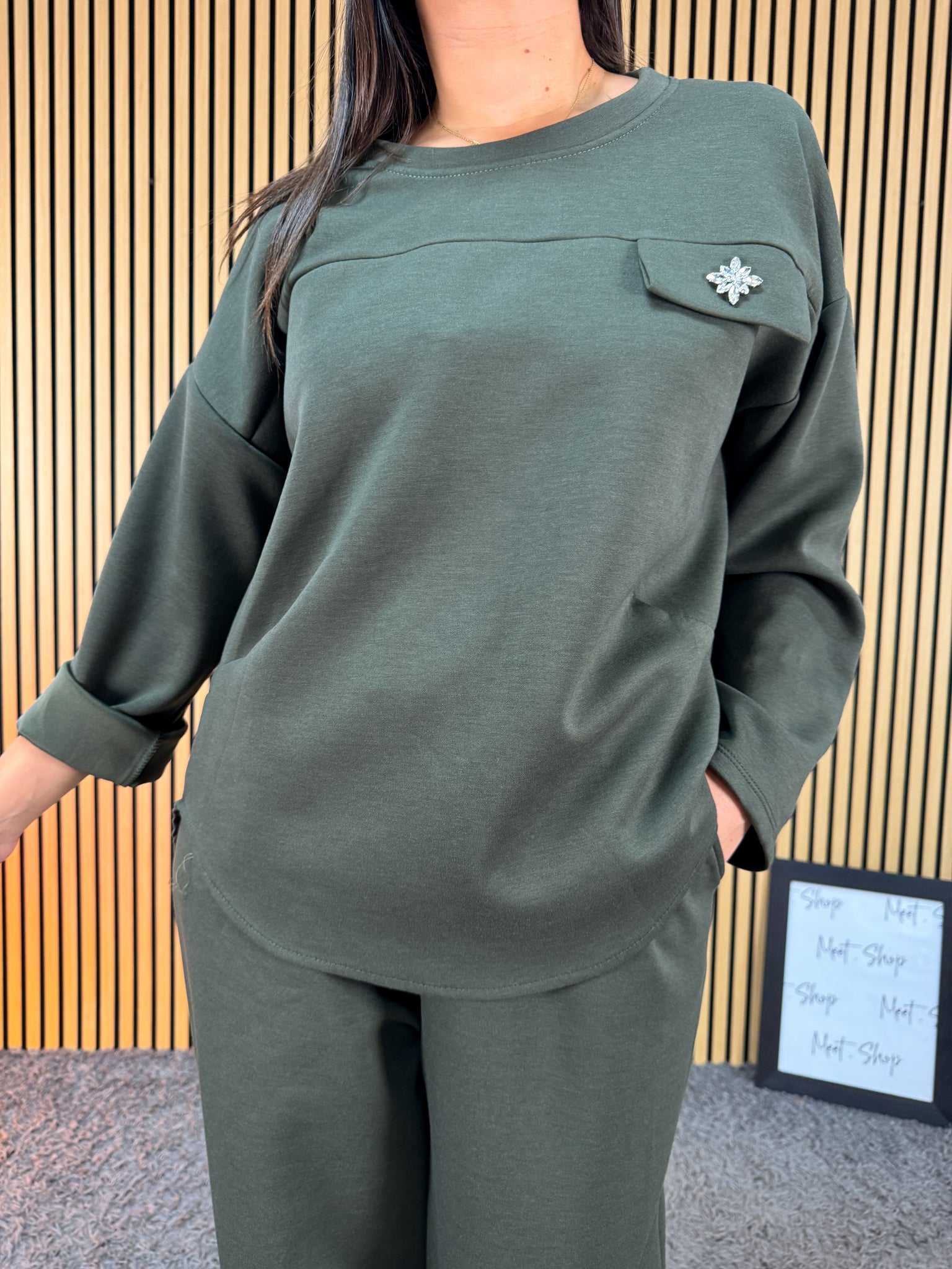 Felpa in viscosa elasticizzata abbinata al pantalone over Simonetta