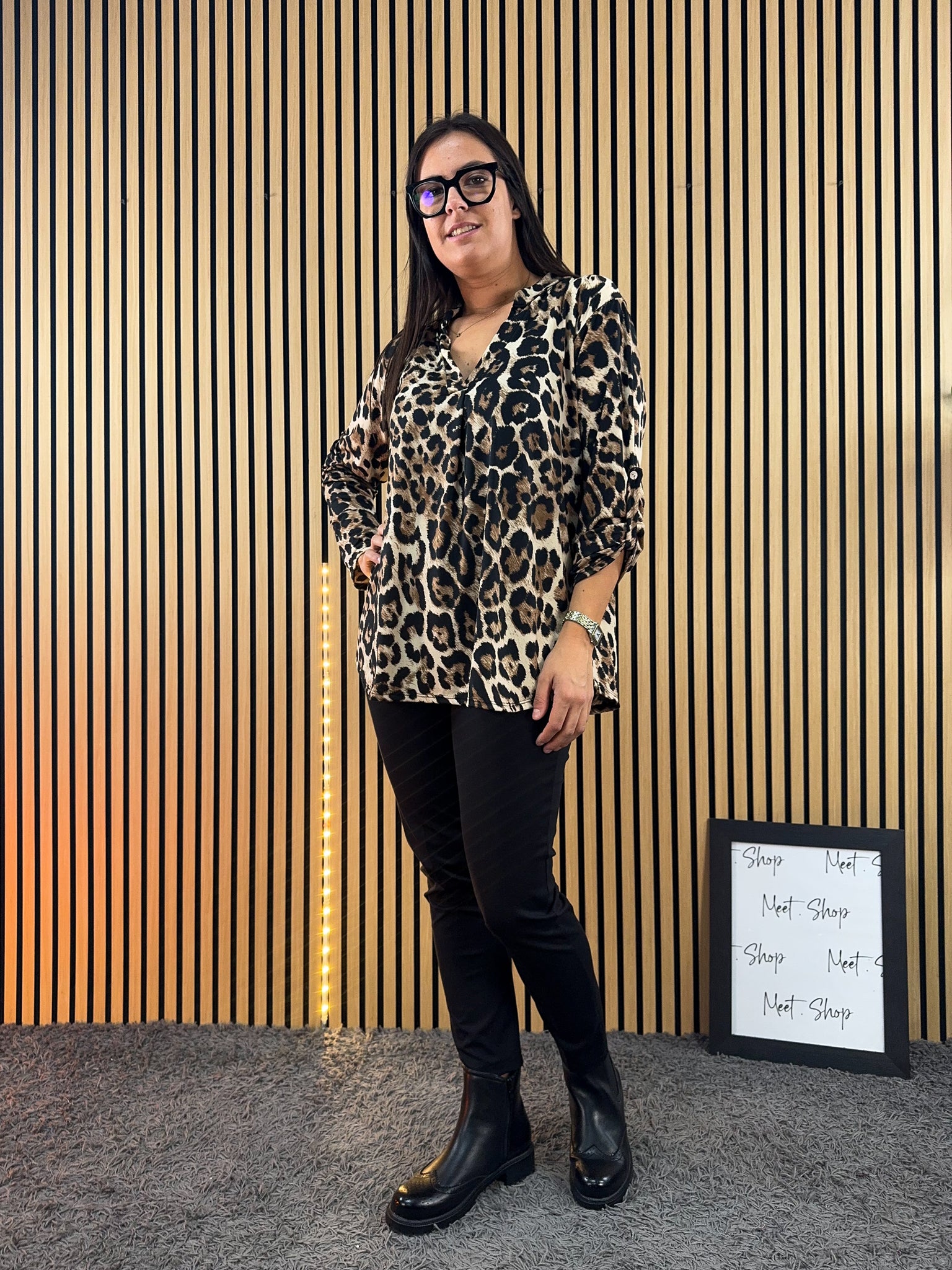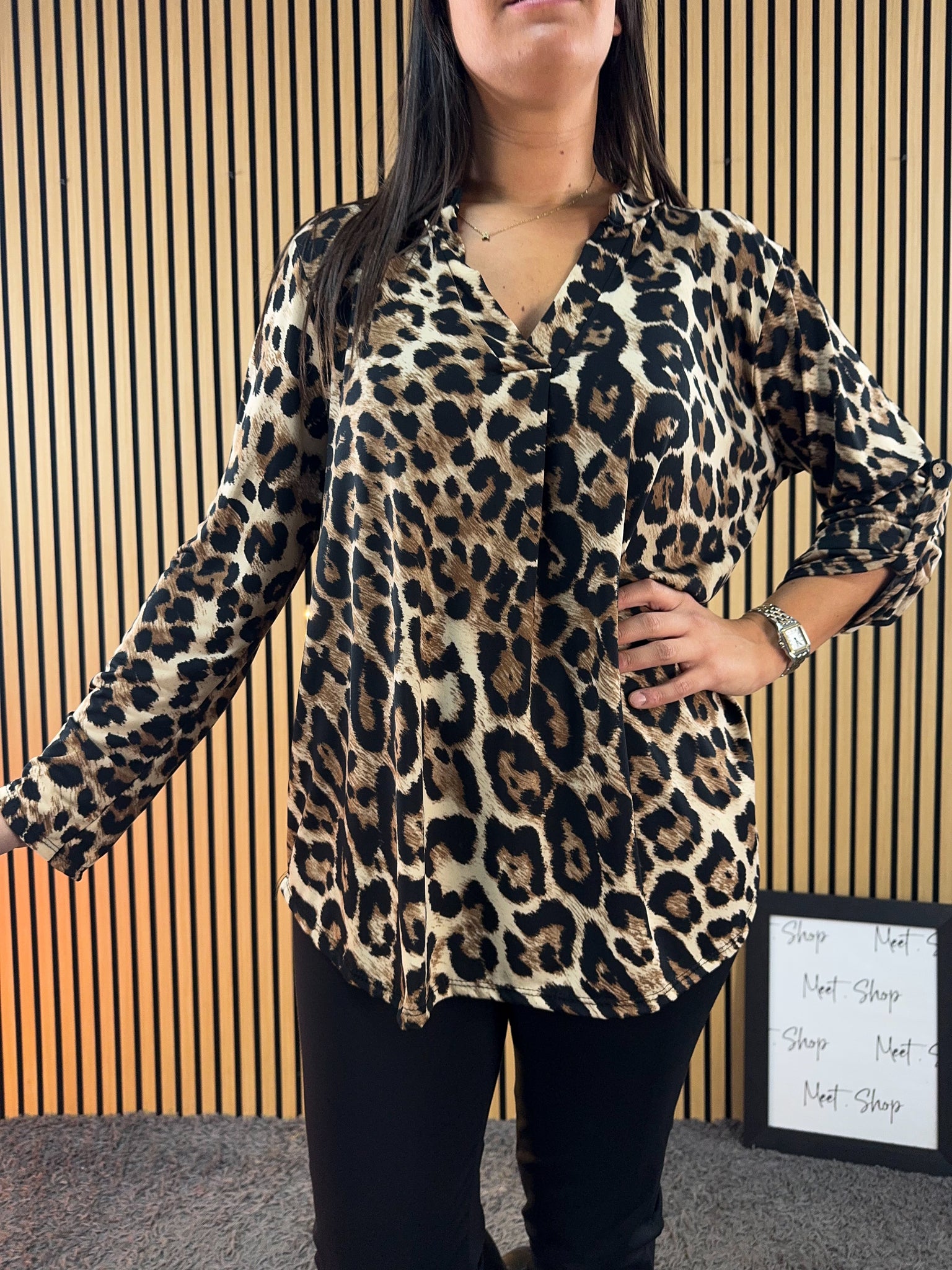 Maglia in viscosa elasticizzata con scollo a V e possibilità di raccogliere la manica