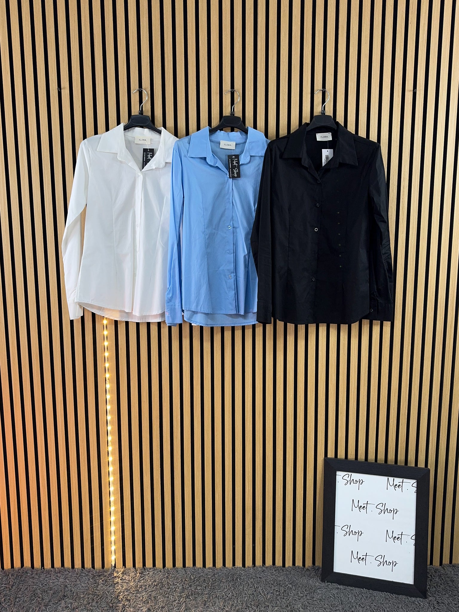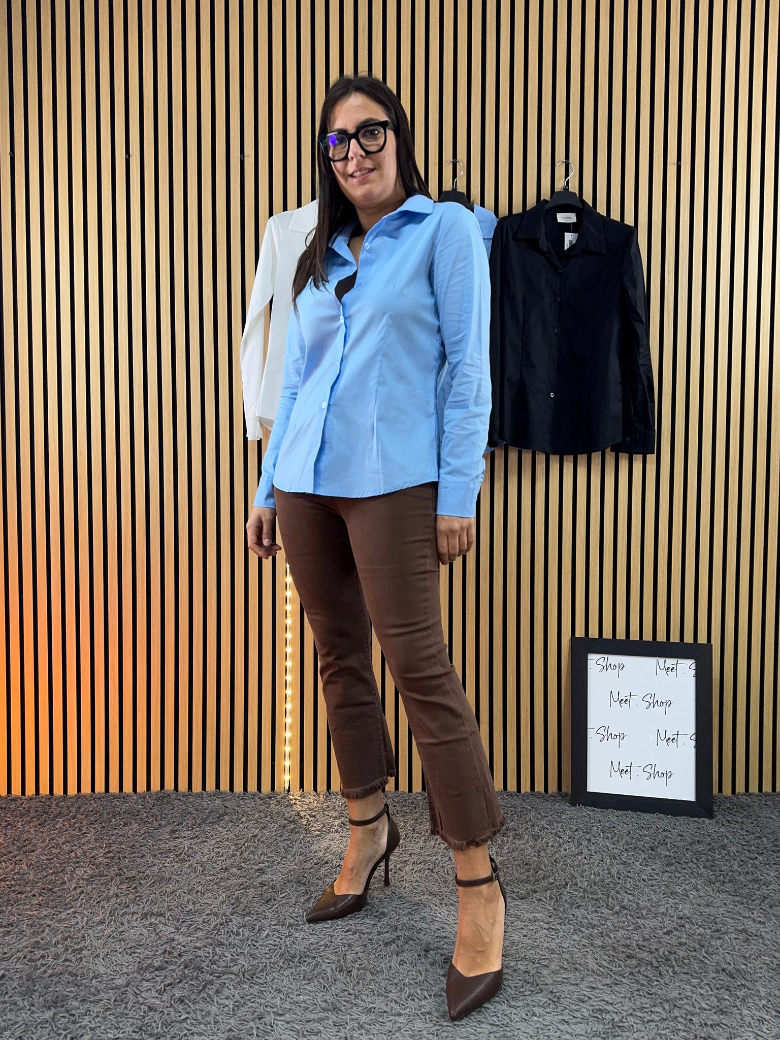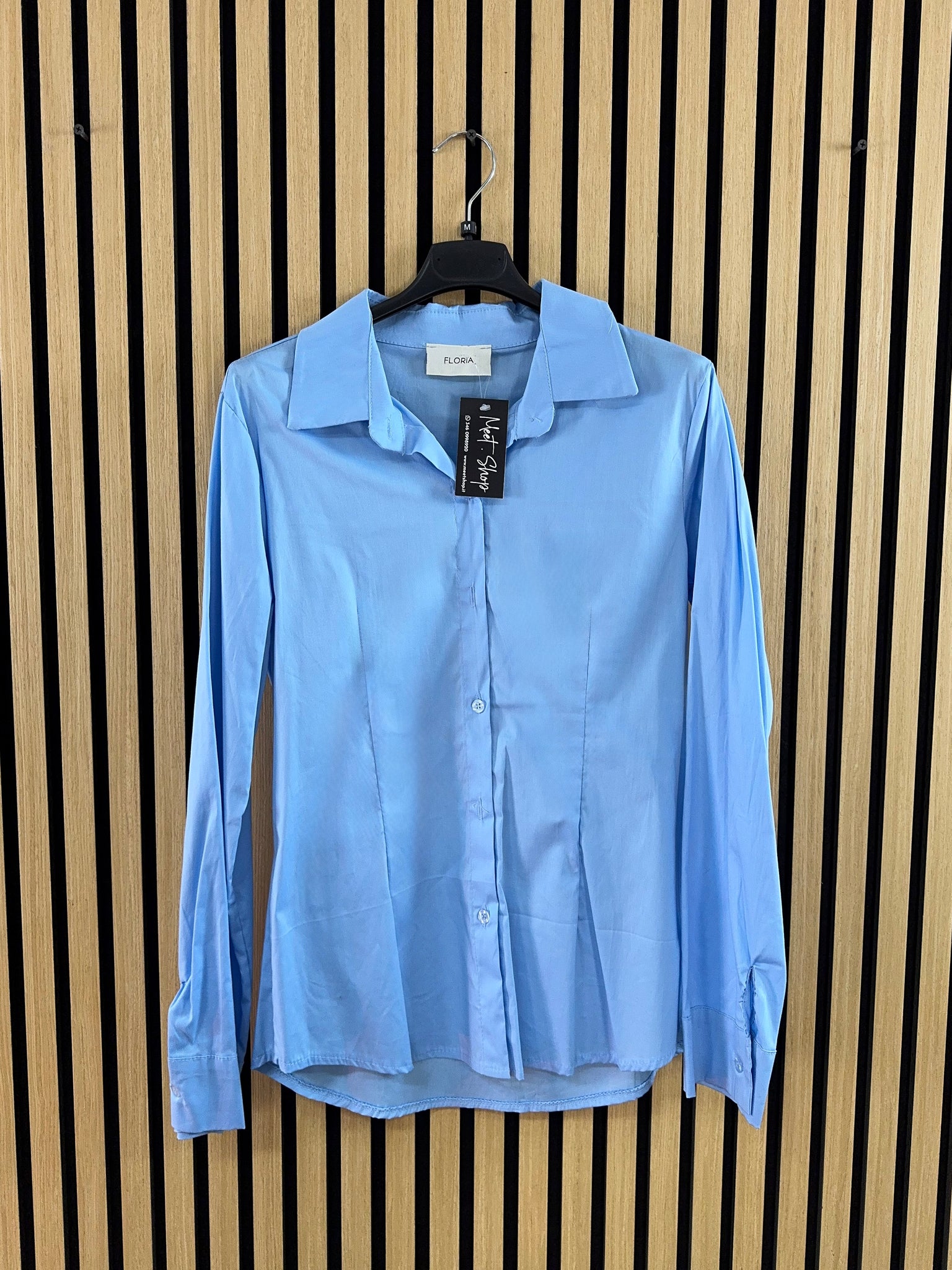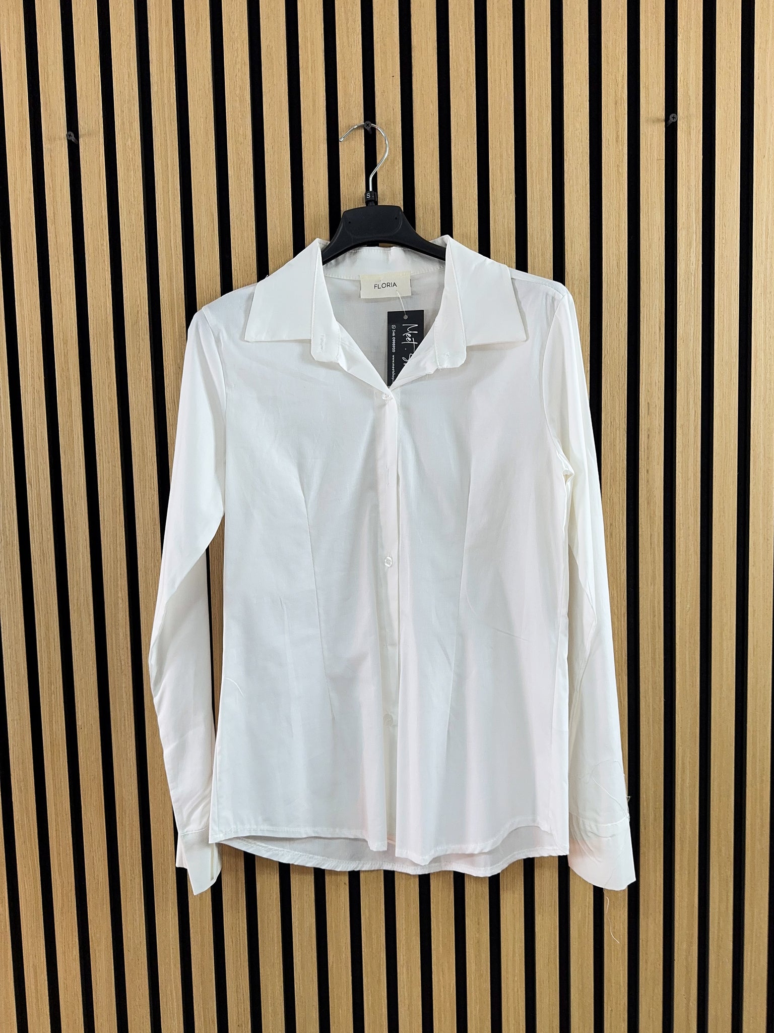 Camicia basica in cotone sfiancata e leggermente elasticizzata.