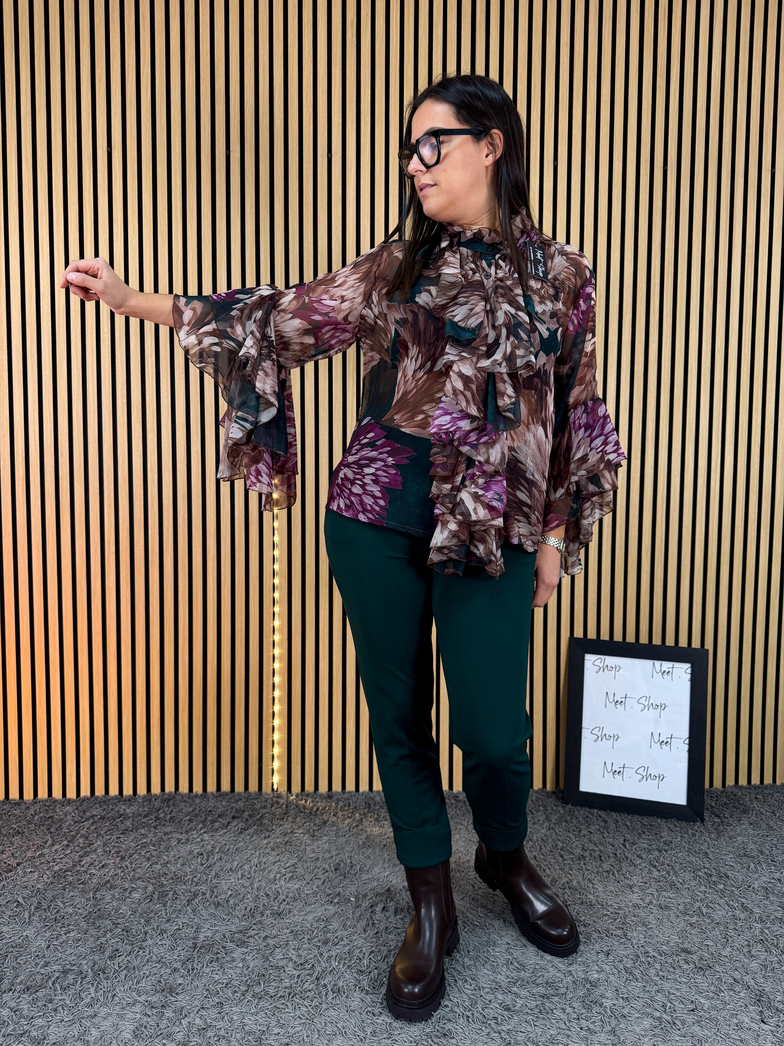 Camicia ad apertura completa con bottoncino frontali, presenta rouge sul davanti e sulla manica