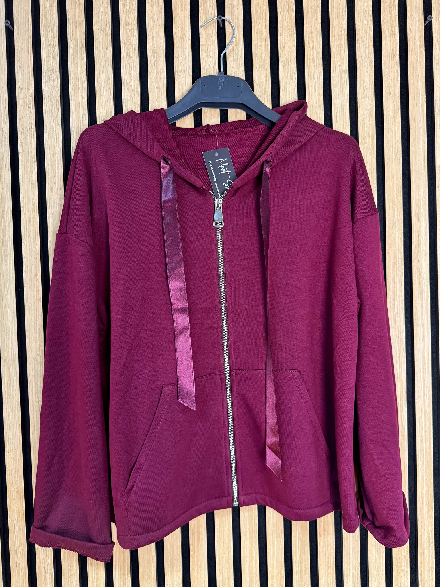 Felpa in cotone garzato con cappuccio e zip, abbinata al pantalone Filomena