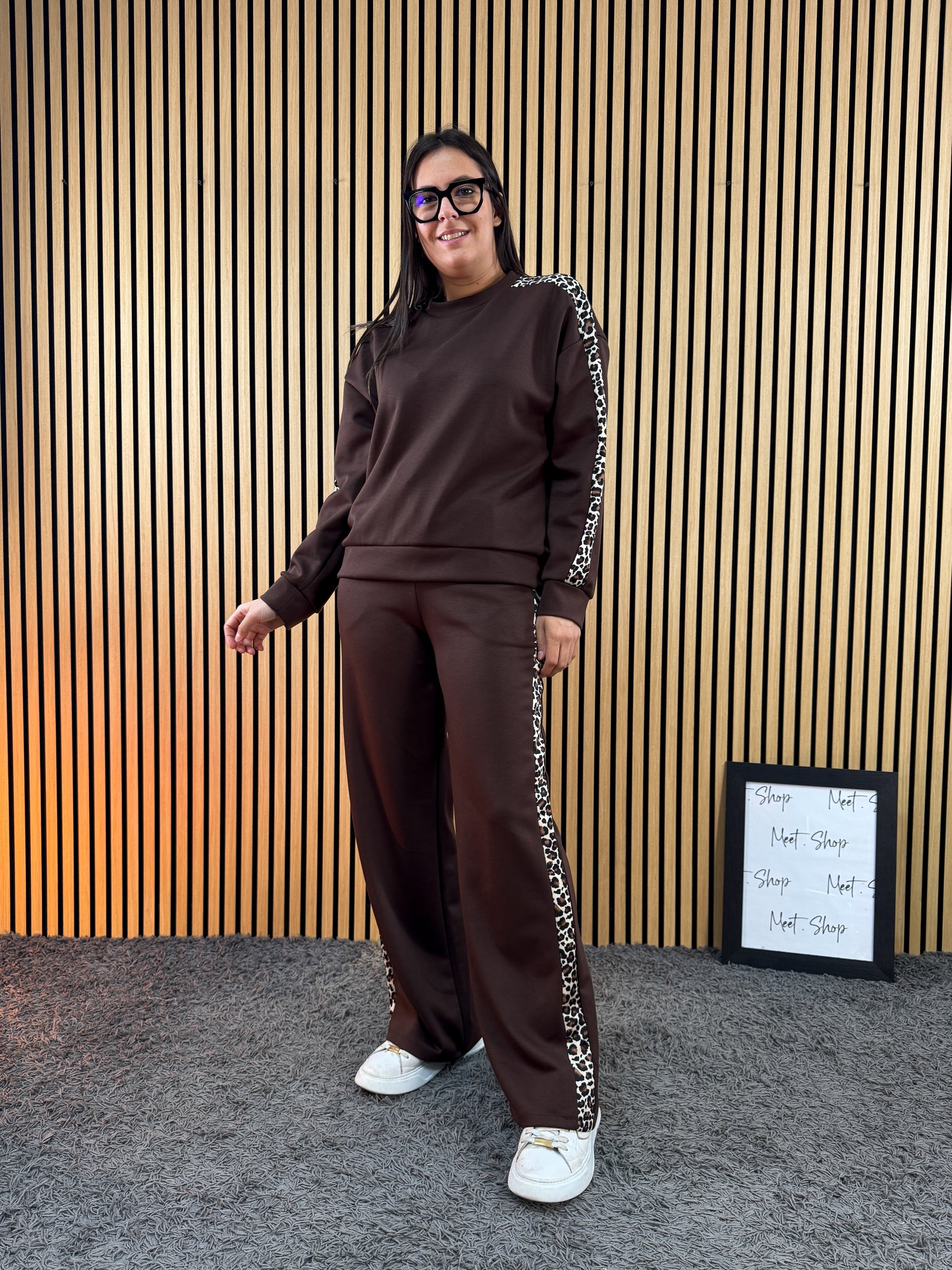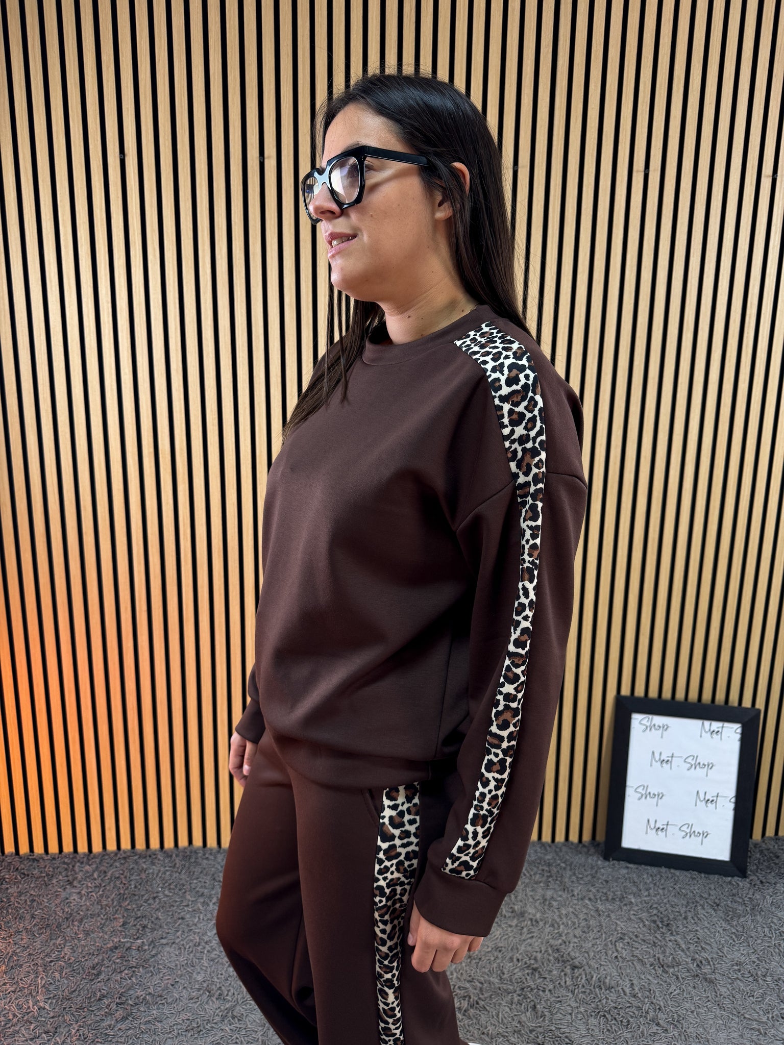 Felpa in viscosa con effetto leopardato sulla manica, abbinata al suo pantalone Matilde