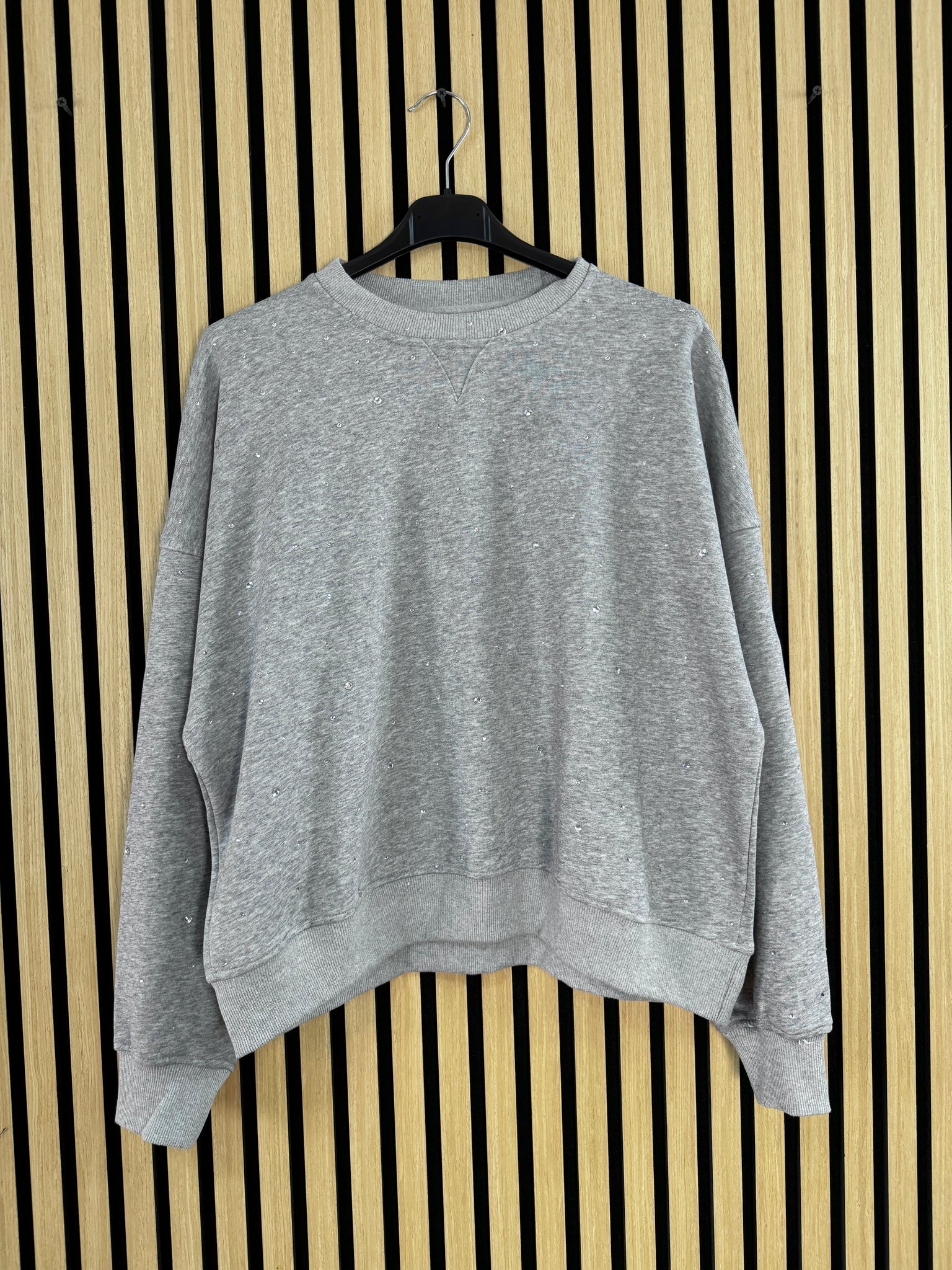 Felpa gioiello girocollo in cotone garzato con taglio basso della spalla