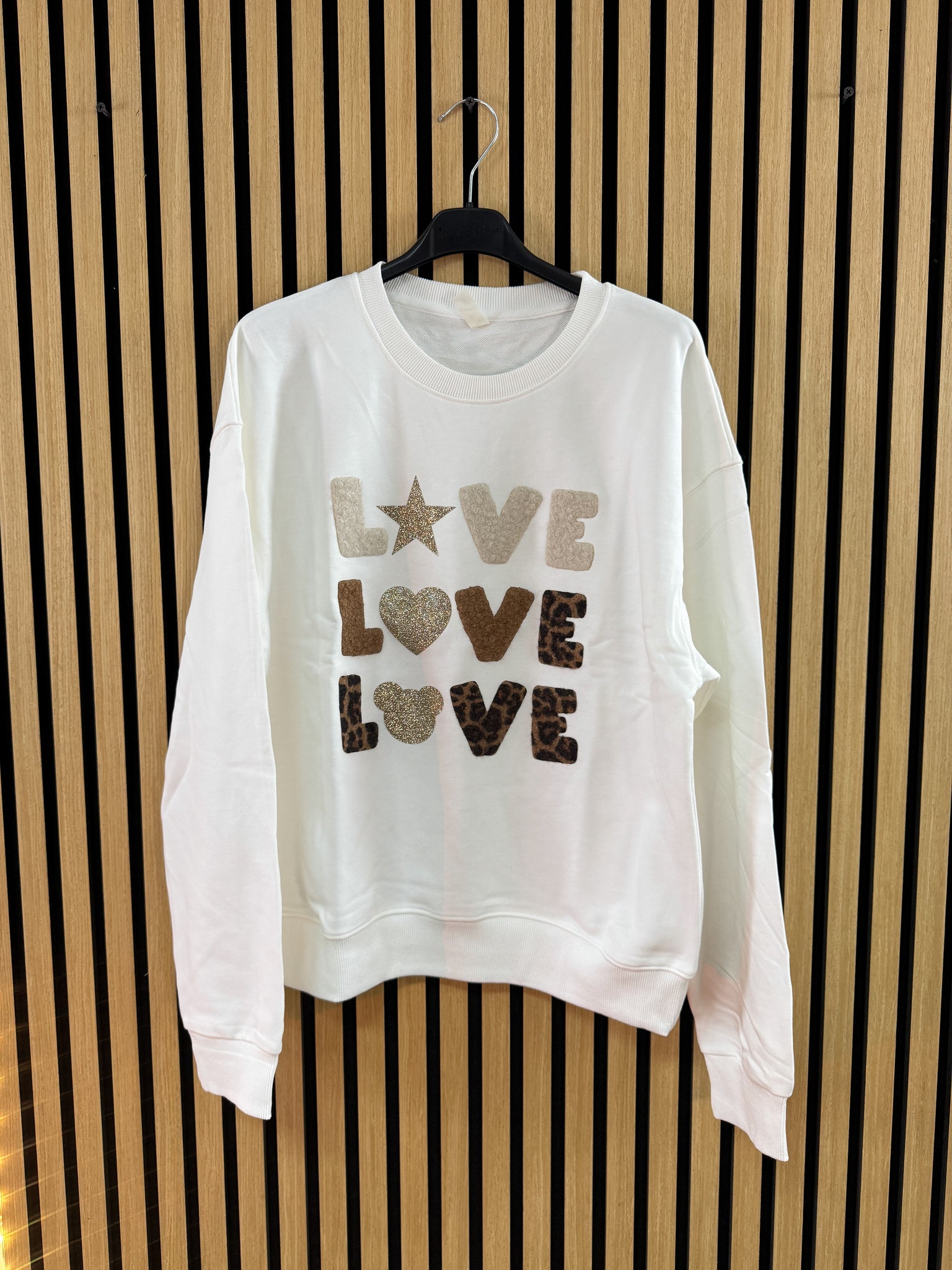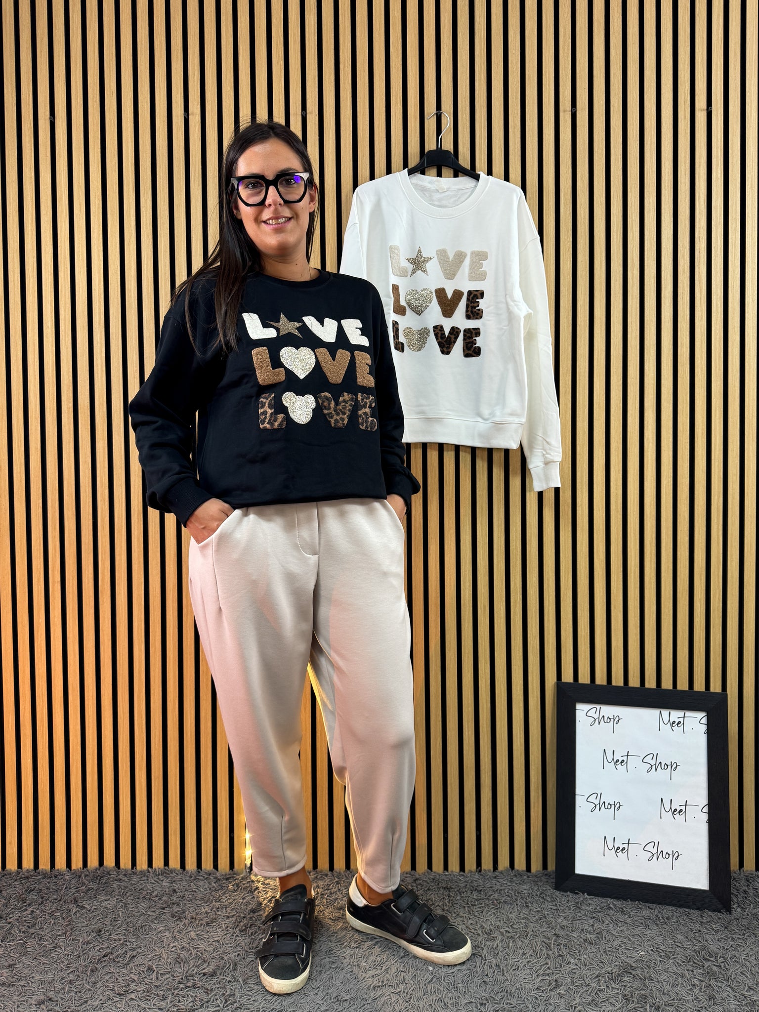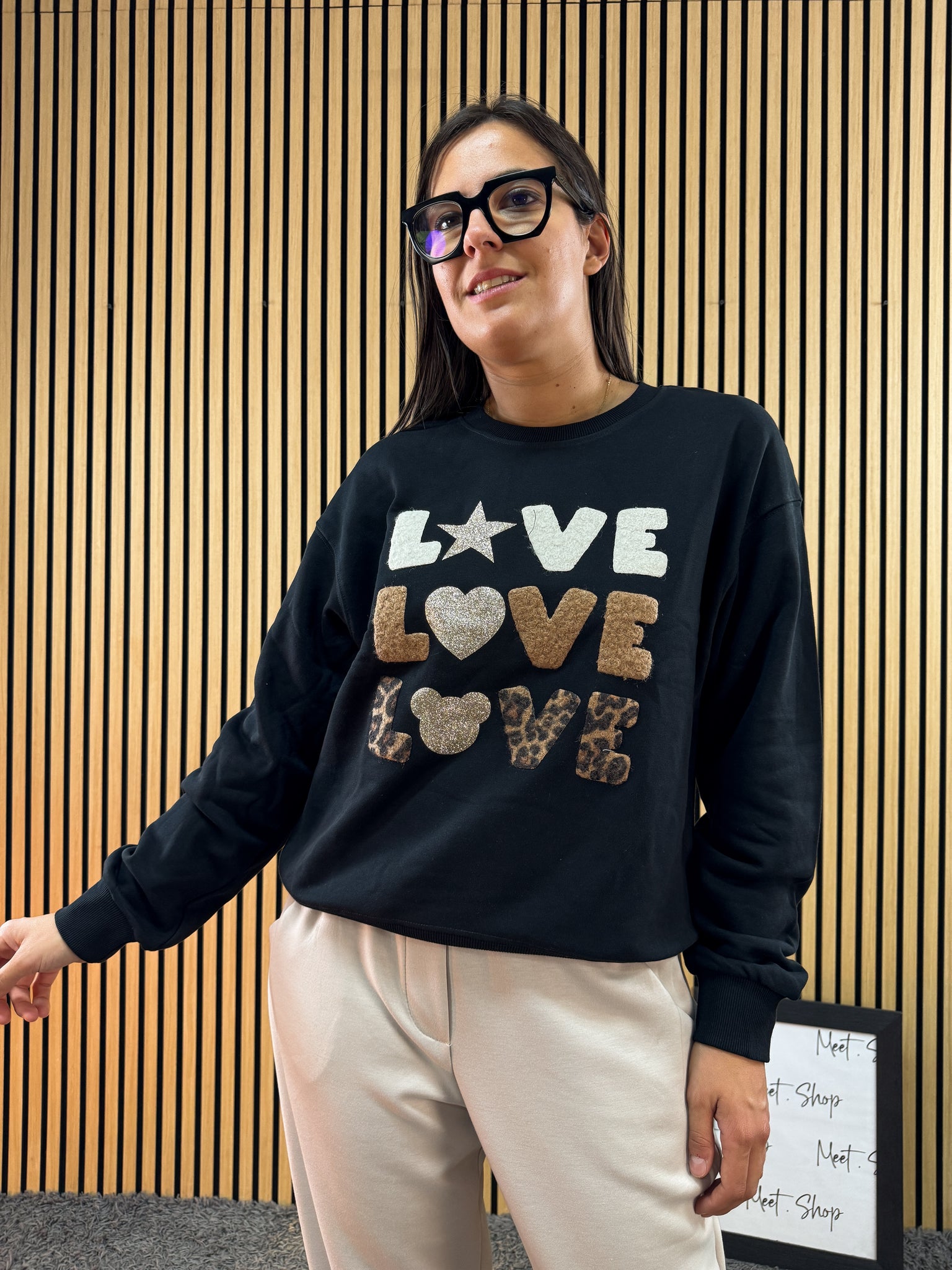 Felpa in cotone garzato con stampa e applicazione frontale.