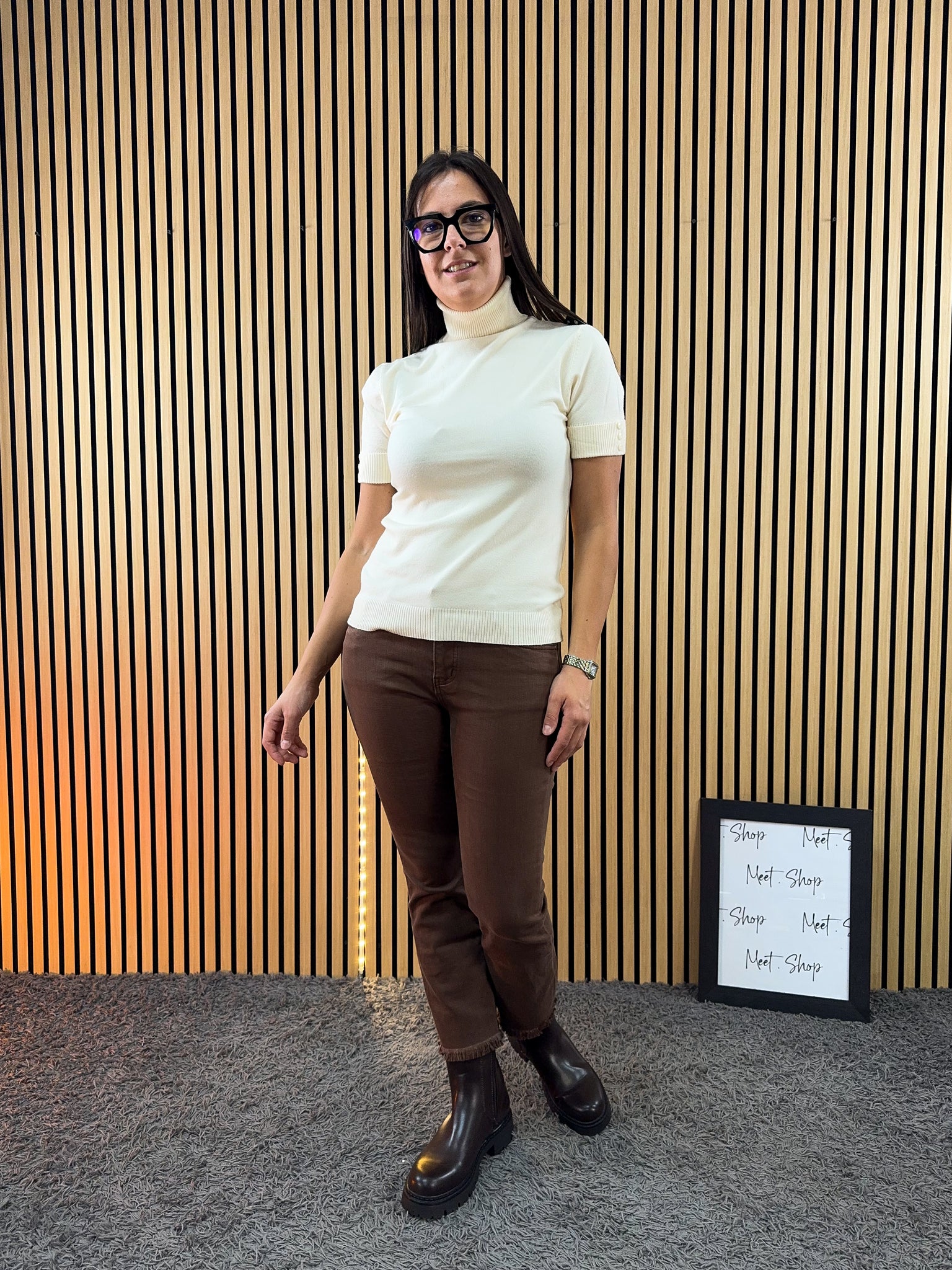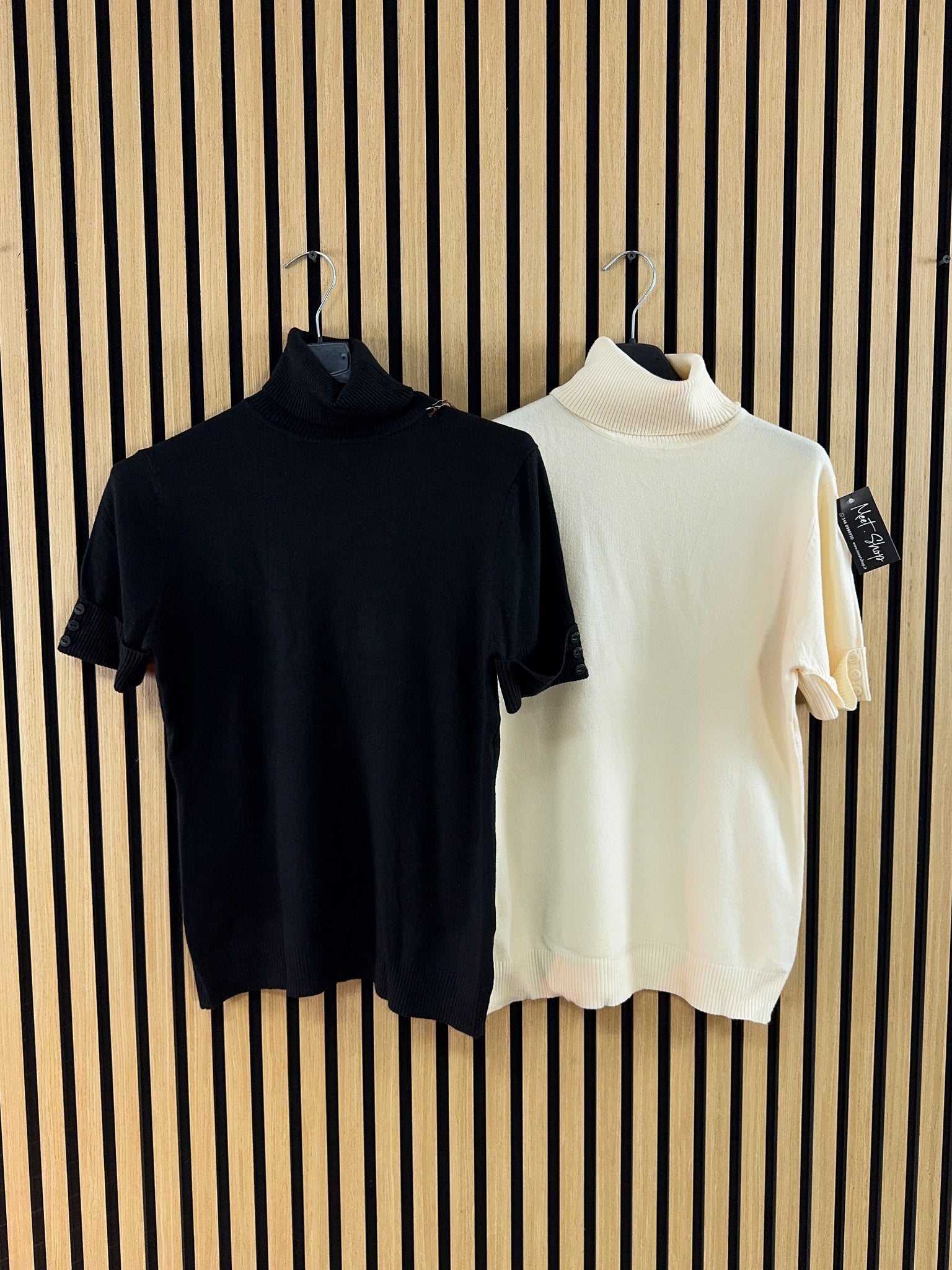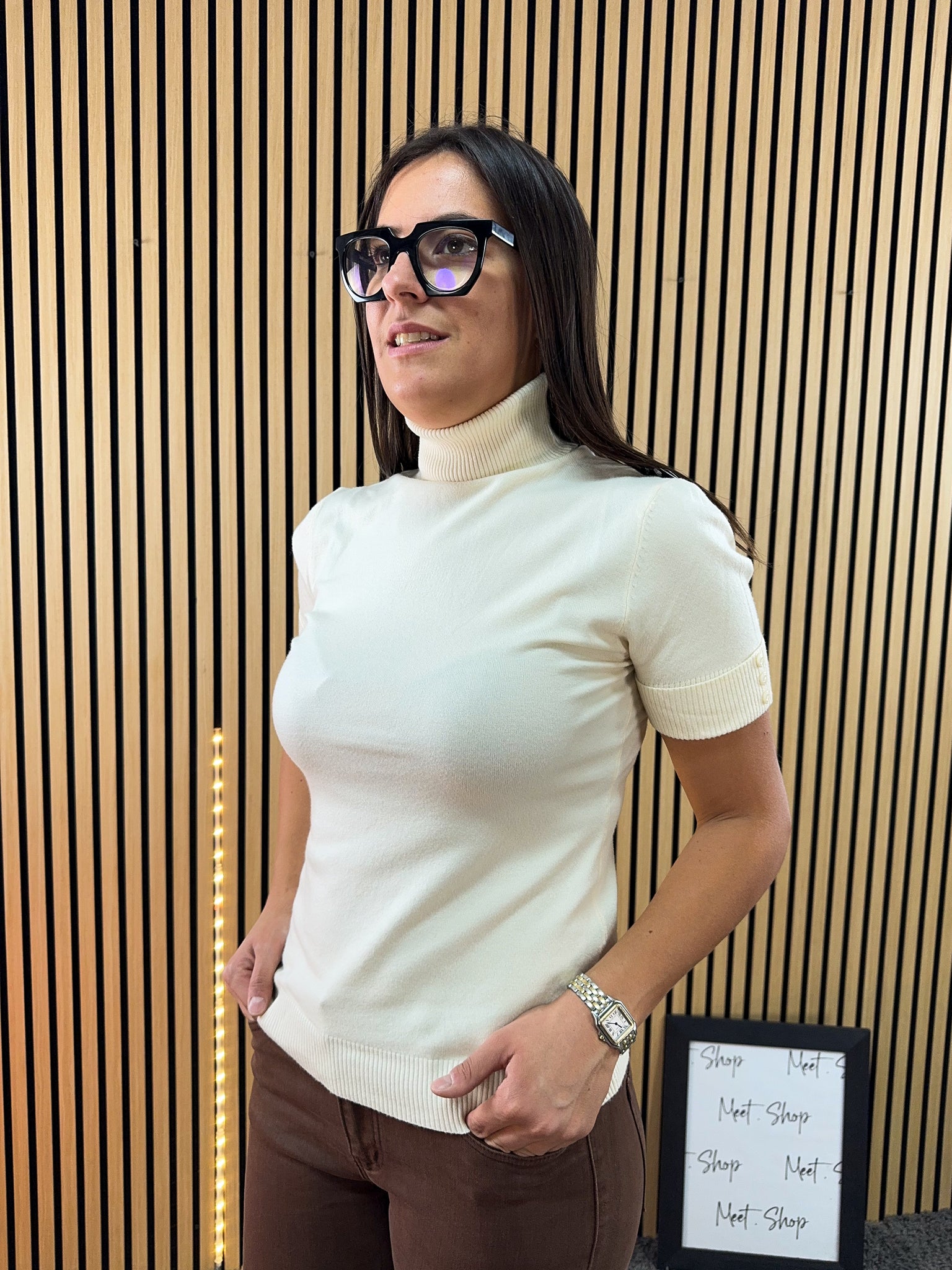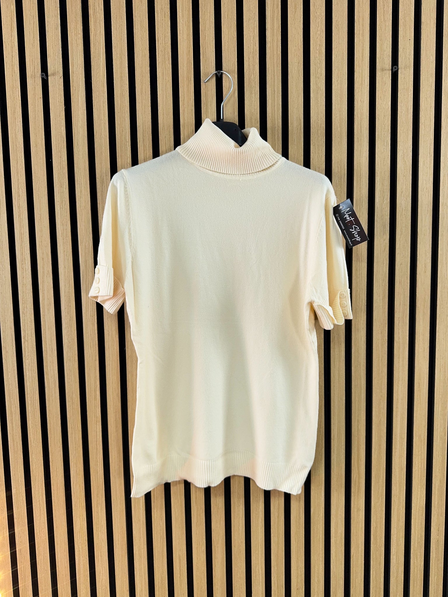 Lupetto mezza manica in viscosa con dettaglio bottoncini sulla manica.