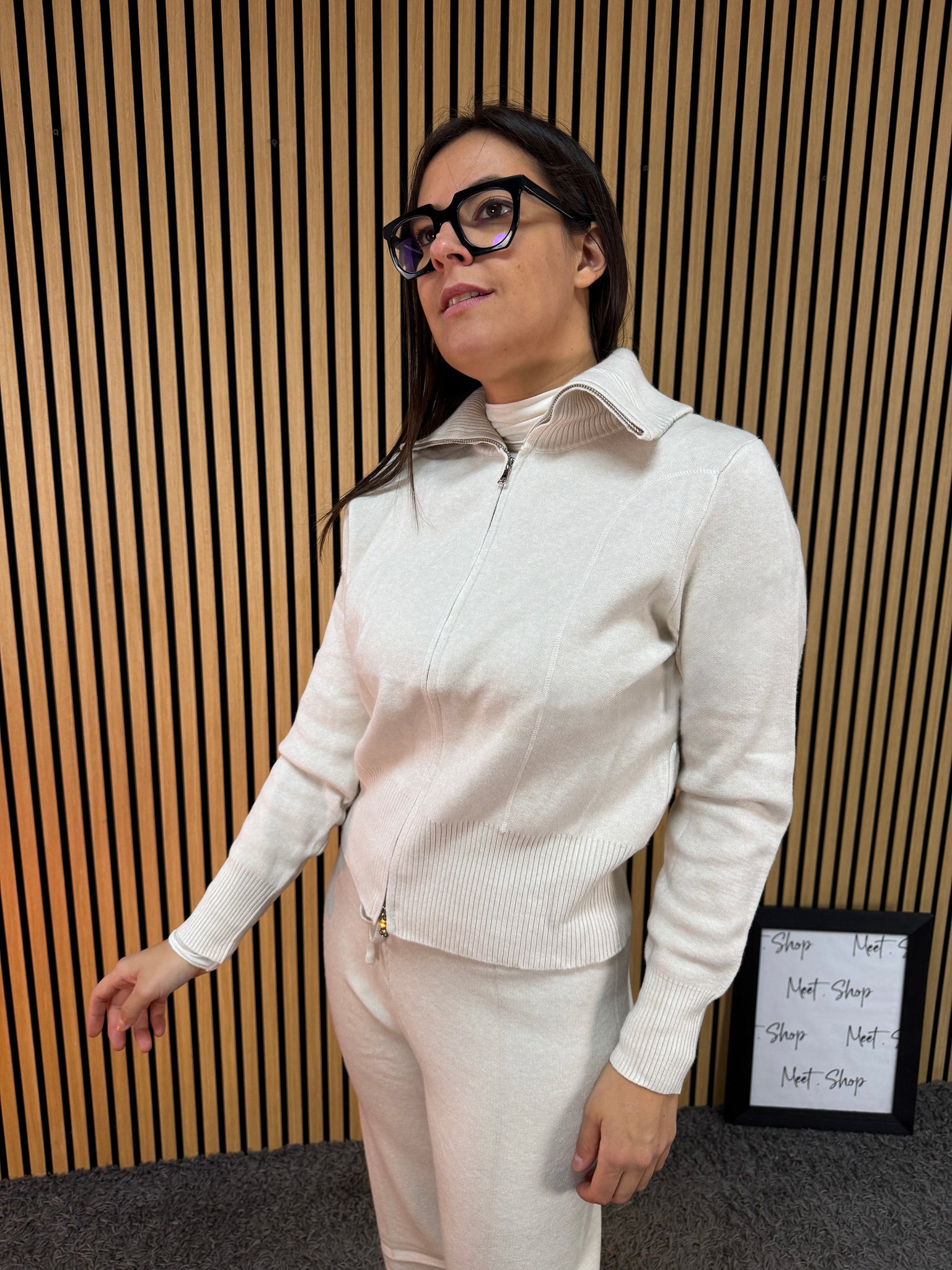 Maglia in calda viscosa con apertura zip completa a doppio cursore