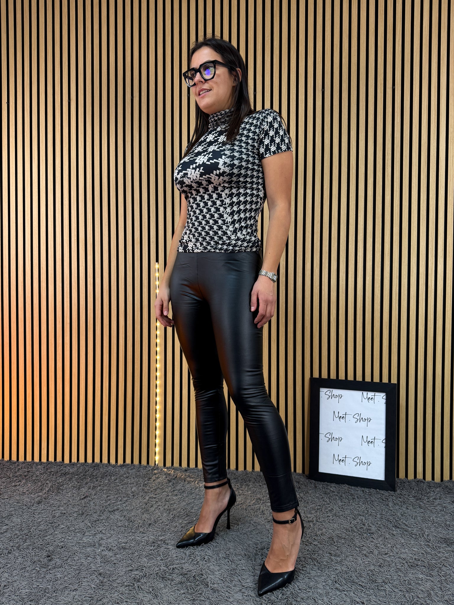 Leggins in pelle ecologica leggermente felpato all'interno, veste regolare.