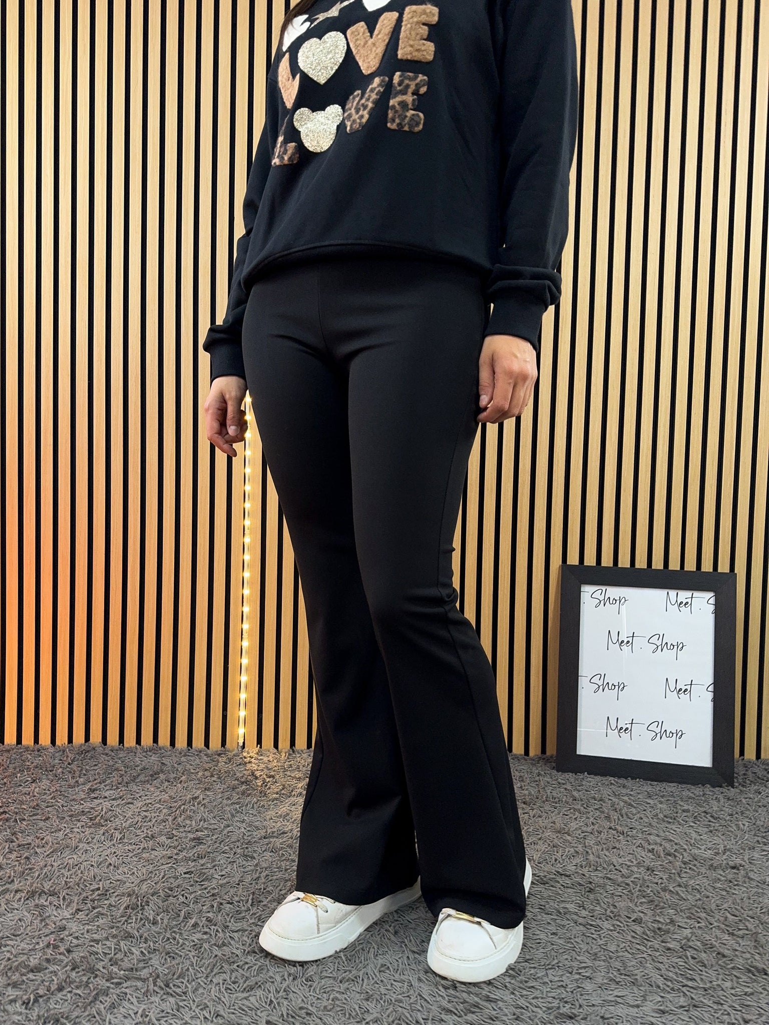 Pantalone a zampa elasticizzato ,con elastico in vita.