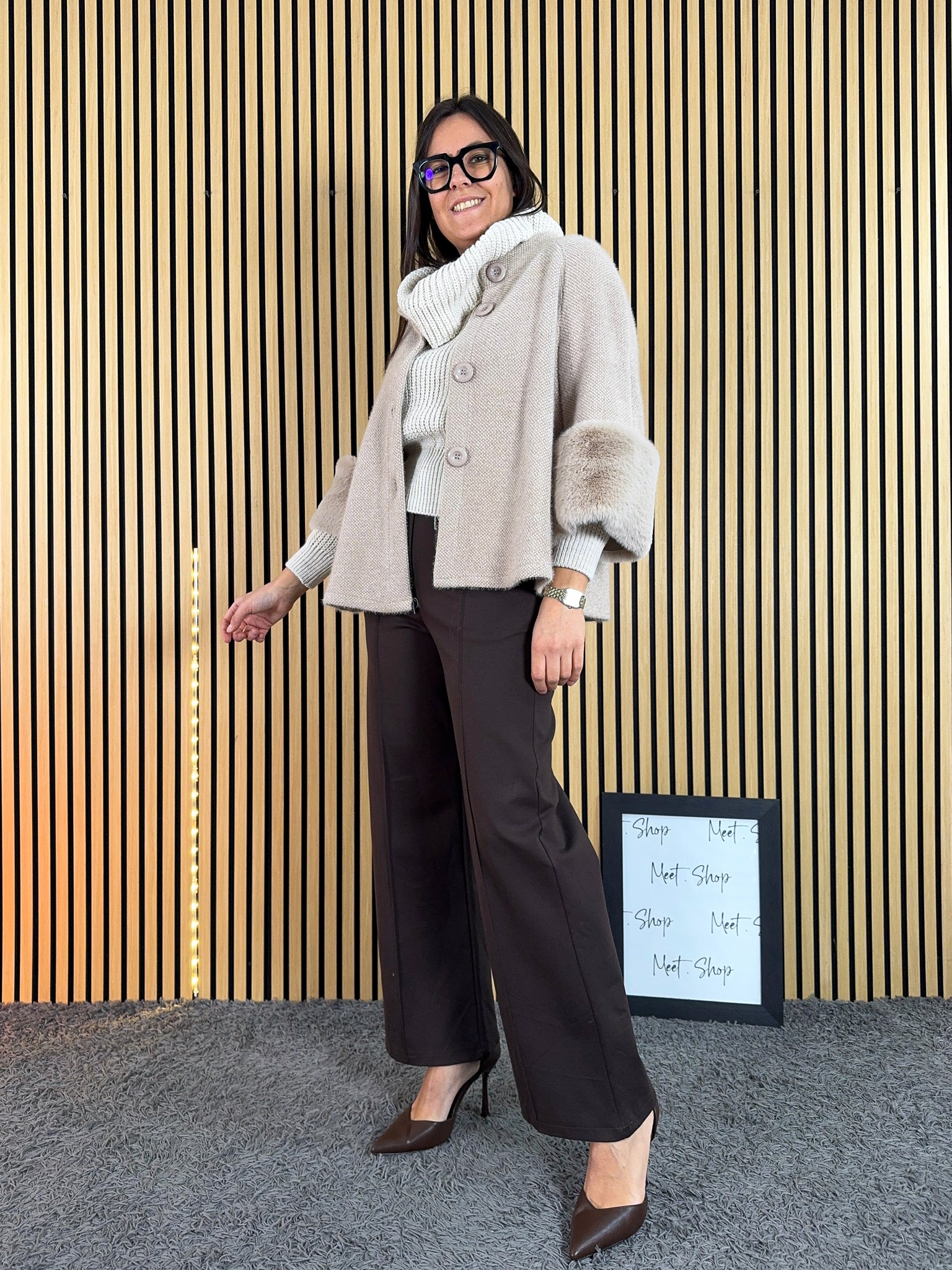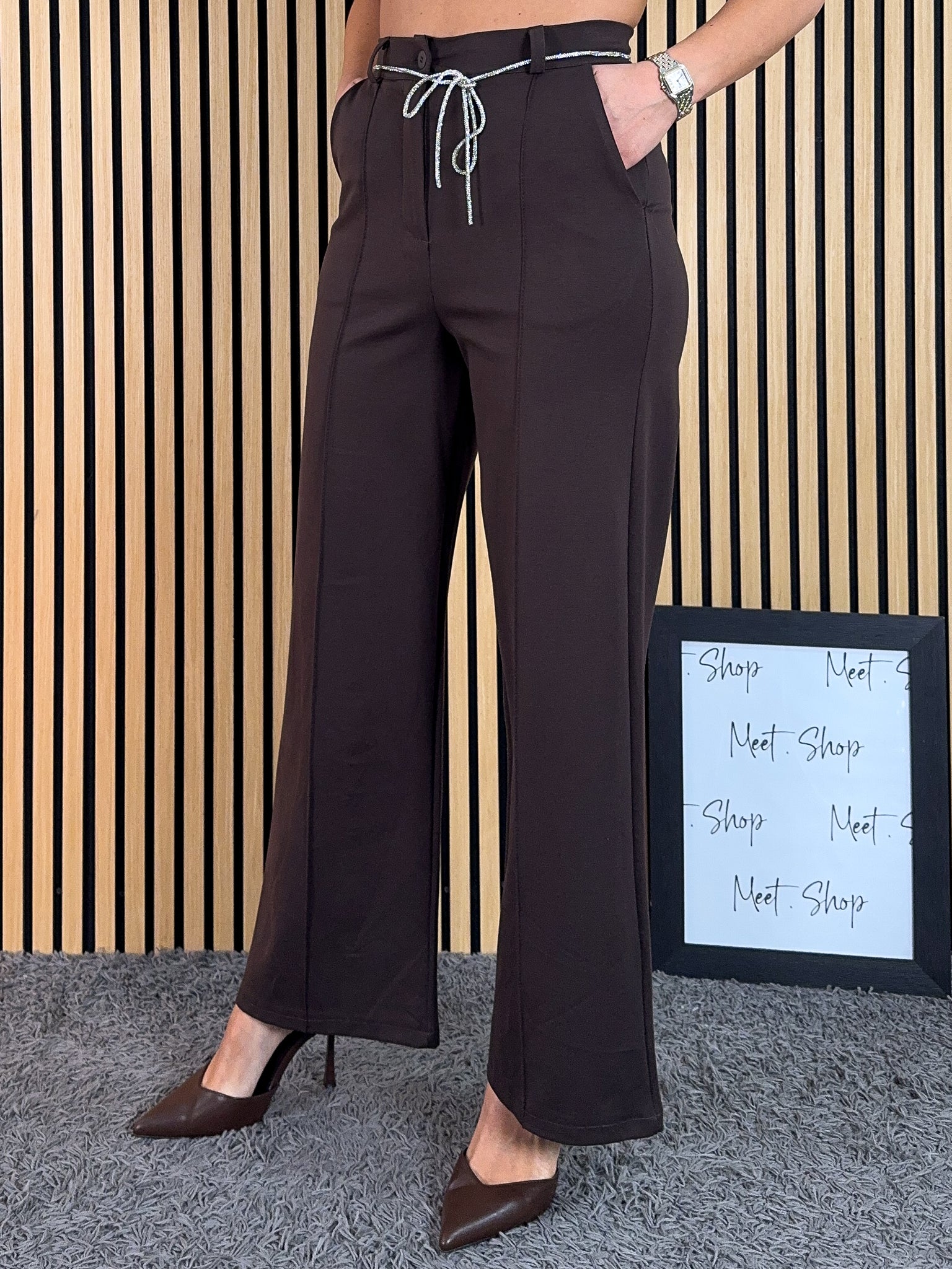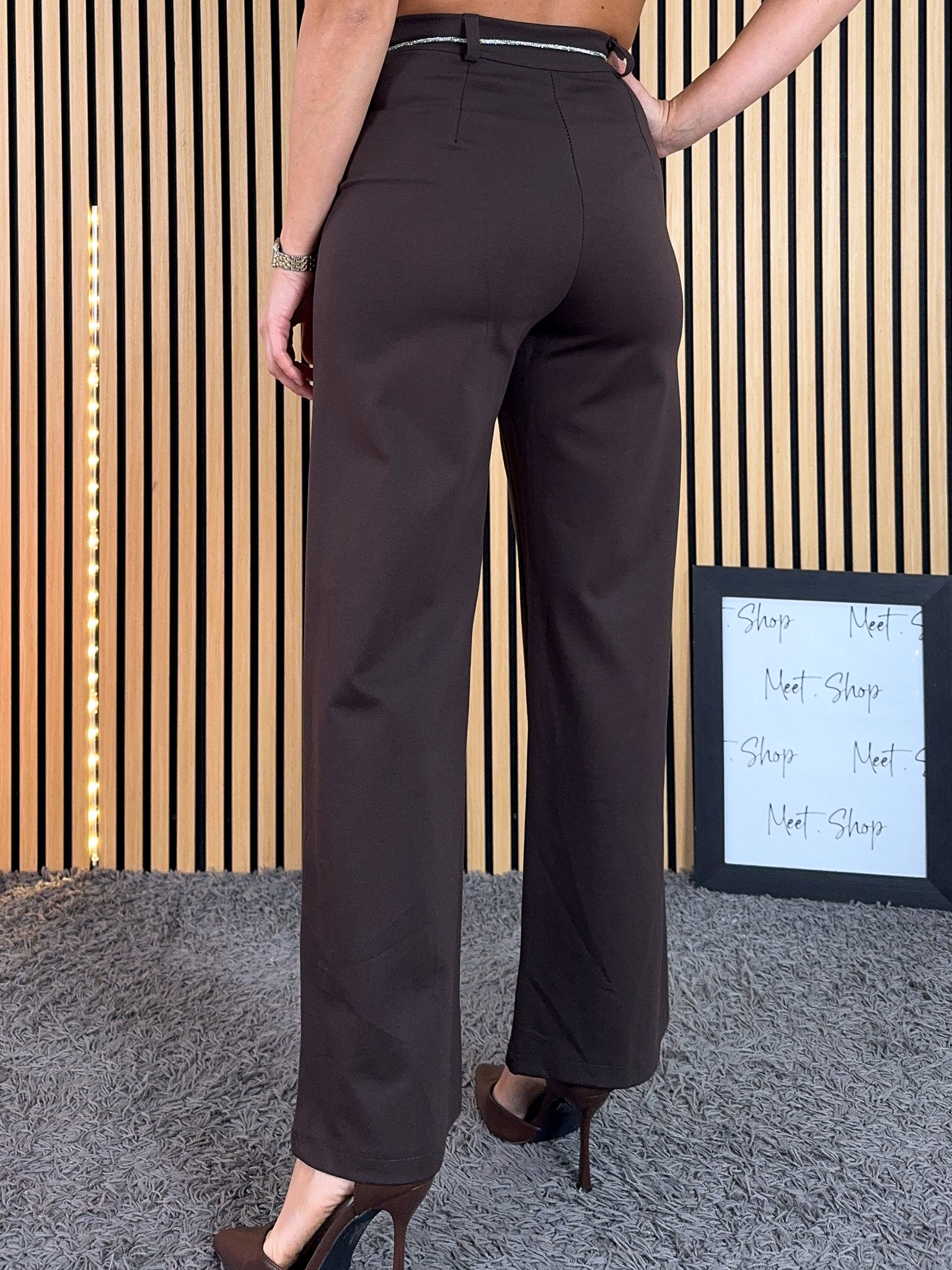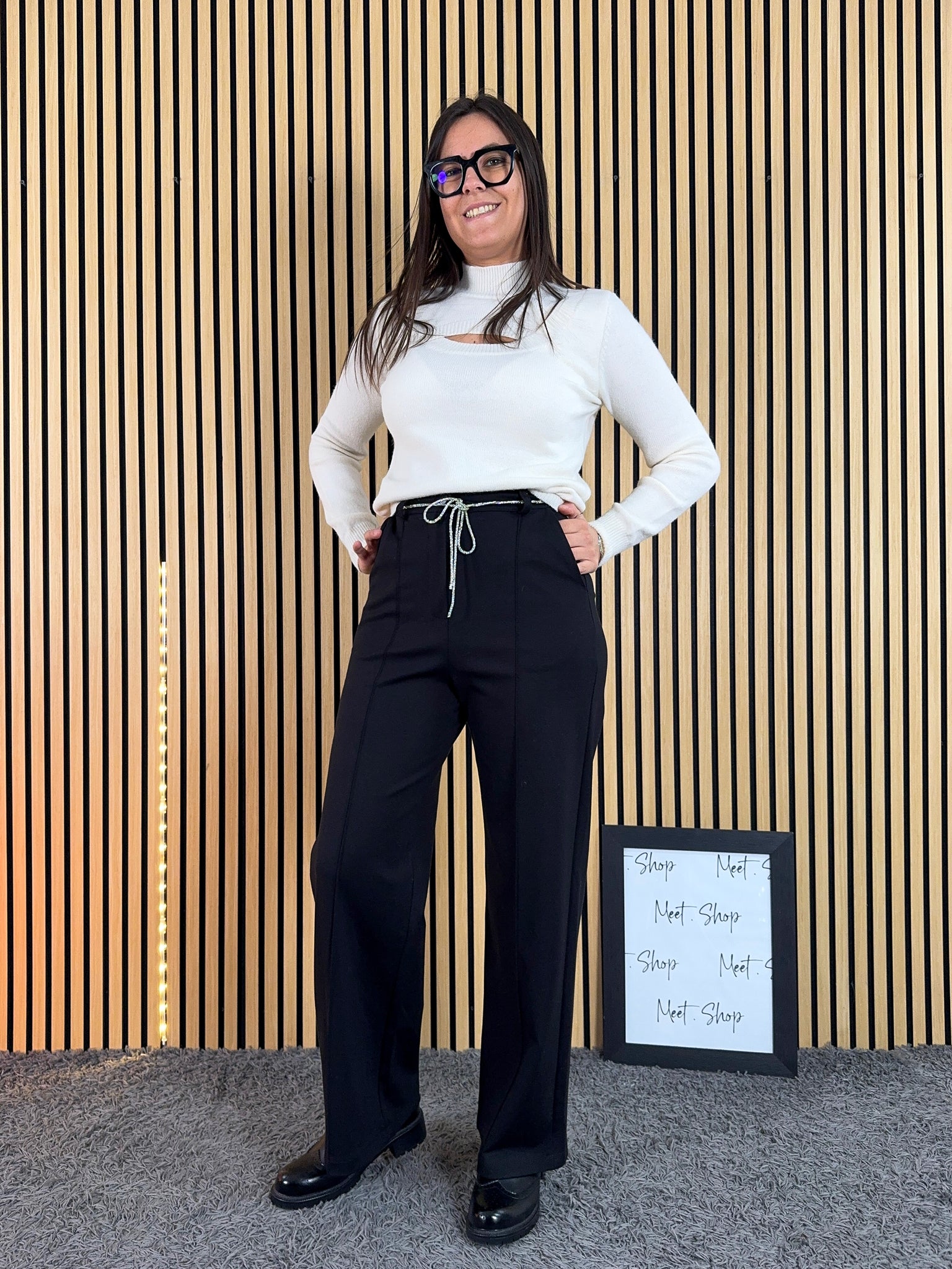 Pantalone a palazzo vita alta in viscosa elasticizzata con bottone e zip